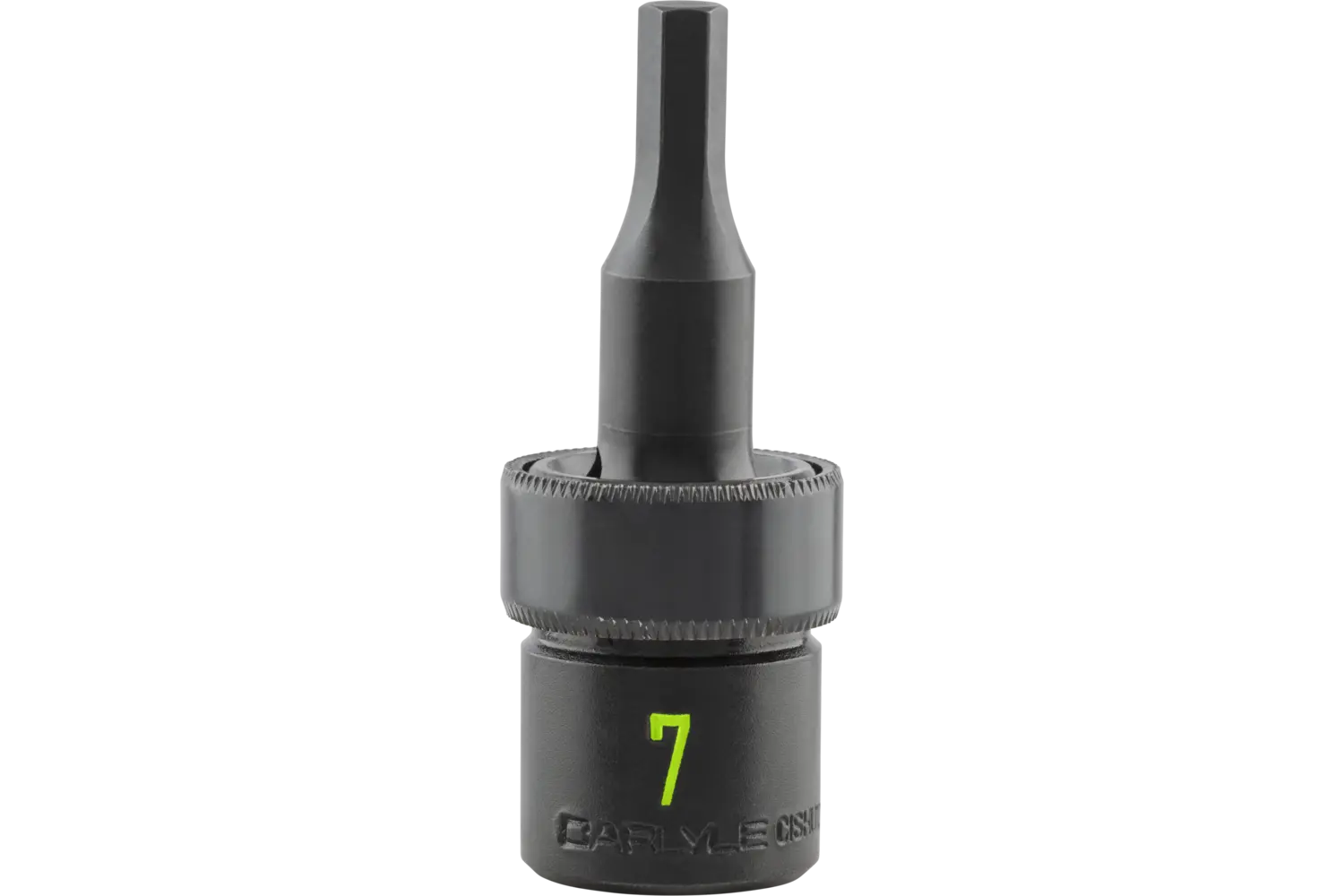Introducing the Carlyle 1/2 in. Drive Hex Bit Impact Swivel Sockets - Metric, the ultimate solution for demanding automotive and industrial applications. Expertly forged from high-quality chrome molybdenum alloy steel, these sockets are designed to withstand the rigors of impact use, providing durability and long-lasting performance. The innovative radius corner design provides superior gripping of fasteners, reducing wear and preventing rounding, while the chamfered openings allow for a quicker and more efficient fit over fasteners. With a versatile swivel socket design and shallow depth, these 6-point sockets offer enhanced access and flexibility in tight spaces. Available in a comprehensive range of sizes from 6mm to 19mm, these sockets are perfect for any professional toolkit, delivering exceptional strength and reliability for all your fastening needs.