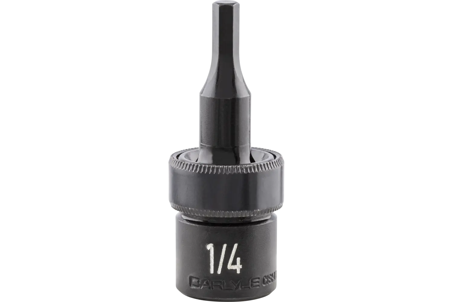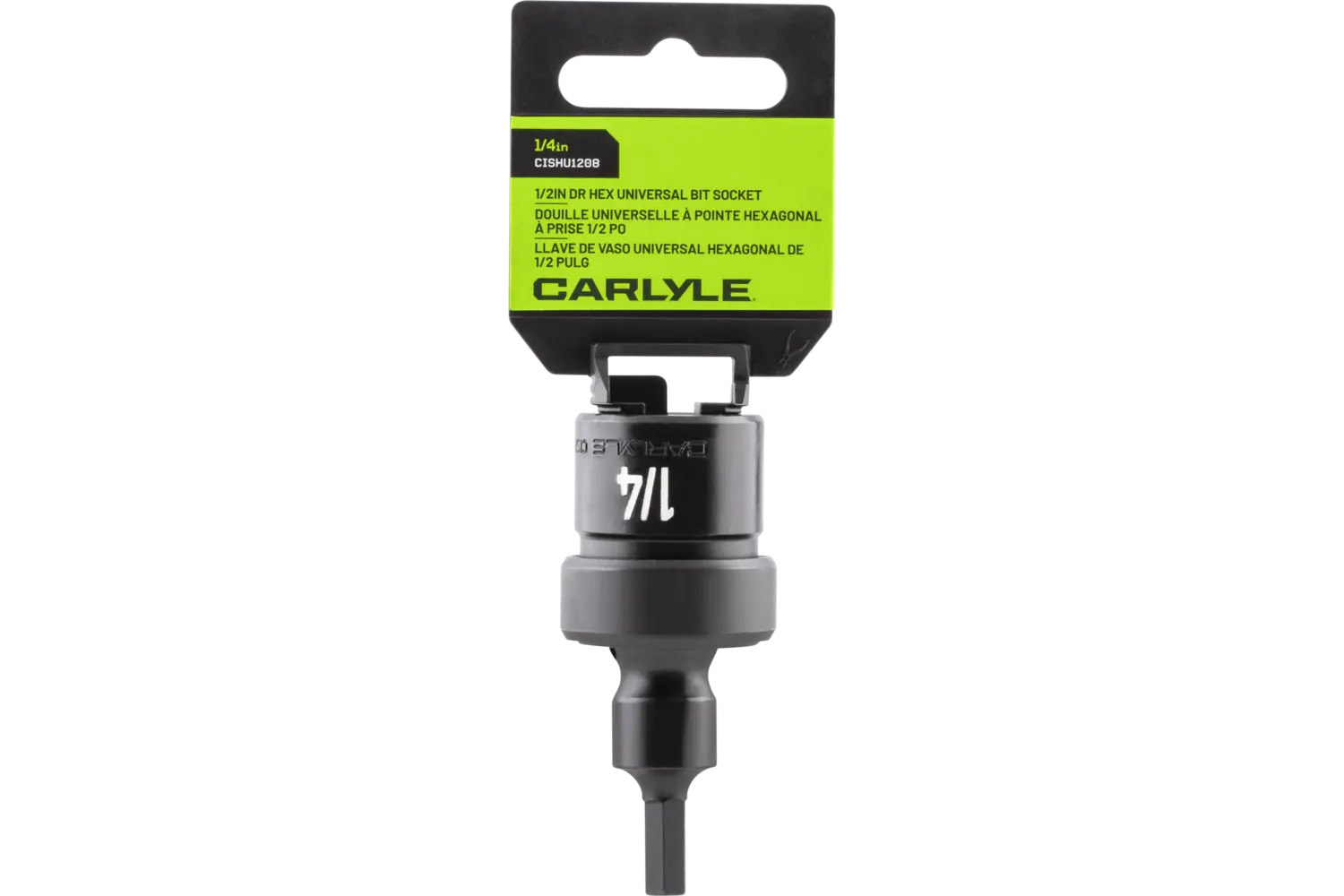 Discover the Carlyle 1/2 in. Drive Hex Bit Impact Swivel Sockets - SAE, engineered to meet the demands of professional mechanics and industrial workers. Crafted from premium chrome molybdenum alloy steel, these impact sockets are built to endure heavy-duty use while maintaining exceptional durability. The innovative radius corner design offers a secure grip on fasteners, minimizing wear and preventing rounding, while the chamfered openings facilitate a swift and seamless fit over fasteners. Featuring a swivel socket design and shallow depth, these 6-point sockets provide enhanced maneuverability and access in confined spaces. Available in a versatile range of SAE sizes, these sockets are an essential addition to any toolkit, offering unparalleled strength and reliability for all your fastening tasks.