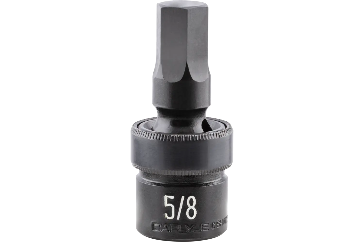 Discover the Carlyle 1/2 in. Drive Hex Bit Impact Swivel Sockets - SAE, engineered to meet the demands of professional mechanics and industrial workers. Crafted from premium chrome molybdenum alloy steel, these impact sockets are built to endure heavy-duty use while maintaining exceptional durability. The innovative radius corner design offers a secure grip on fasteners, minimizing wear and preventing rounding, while the chamfered openings facilitate a swift and seamless fit over fasteners. Featuring a swivel socket design and shallow depth, these 6-point sockets provide enhanced maneuverability and access in confined spaces. Available in a versatile range of SAE sizes, these sockets are an essential addition to any toolkit, offering unparalleled strength and reliability for all your fastening tasks.