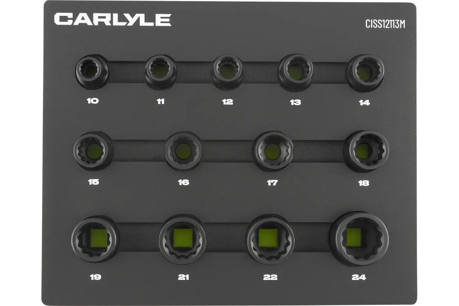 | 10mm, 11mm, 12mm, 13mm, 14mm, 15mm, 16mm, 17mm, 18mm, 19mm, 21mm, 22mm, 24mm | Magnesium Phosphate | 12 Point | Standard | 13 PC | EVA Foam | |
