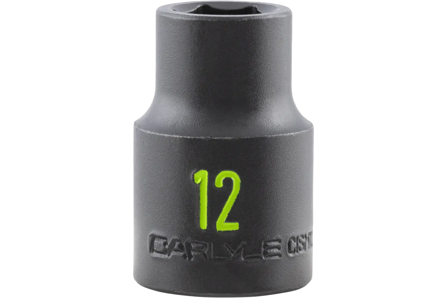 Introducing the Carlyle 1/2 in. Drive Standard Magnetic Impact Sockets - Metric, designed for professionals seeking precision and durability in their tools. These sockets are expertly forged from high-quality chrome molybdenum alloy steel, providing they can withstand the toughest impact applications while maintaining their integrity. The radius corner design enhances gripping power on fasteners, reducing wear and preventing rounding, while the chamfered openings allow for a swift and efficient fit over fasteners. With a shallow depth and 6-point configuration, these sockets provide optimal contact and torque, making them ideal for various tasks. The magnetic feature securely holds fasteners in place, streamlining your workflow. Available in a versatile range of sizes from 10mm to 21mm, these sockets are a must-have for any professional toolkit, offering unmatched strength and reliability.