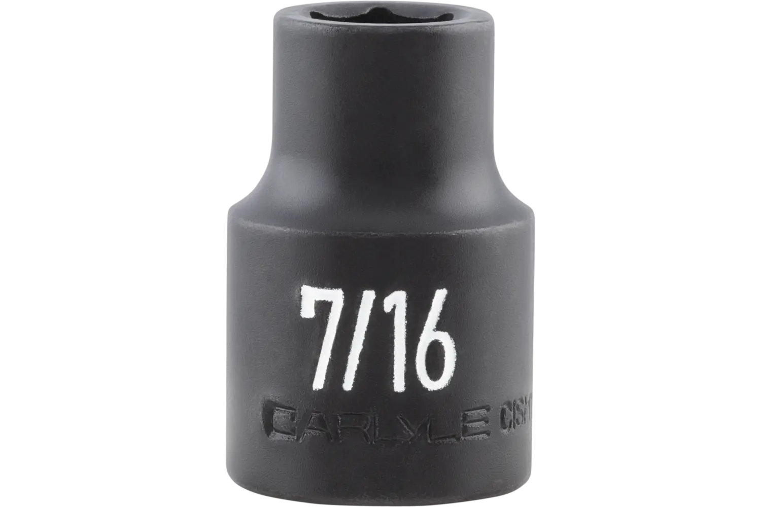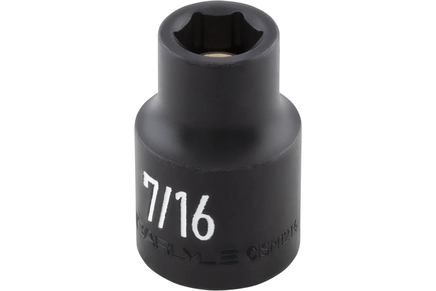 Presenting the Carlyle 1/2 in. Drive Standard Magnetic Impact Sockets - SAE, crafted for those who demand precision and strength in their tools. Constructed from premium chrome molybdenum alloy steel, these sockets are built to endure rigorous impact use while delivering exceptional performance. The innovative radius corner design offers a firm grip on fasteners, reducing wear and preventing rounding, while chamfered openings provide a quick and easy fit over fasteners. Featuring a shallow depth and 6-point design, these sockets maximize torque and contact, making them perfect for a variety of applications. The magnetic feature securely holds fasteners, enhancing efficiency and ease of use. Available in a broad range of SAE sizes, these sockets are an essential addition to any professional's toolkit, offering unparalleled durability and reliability.