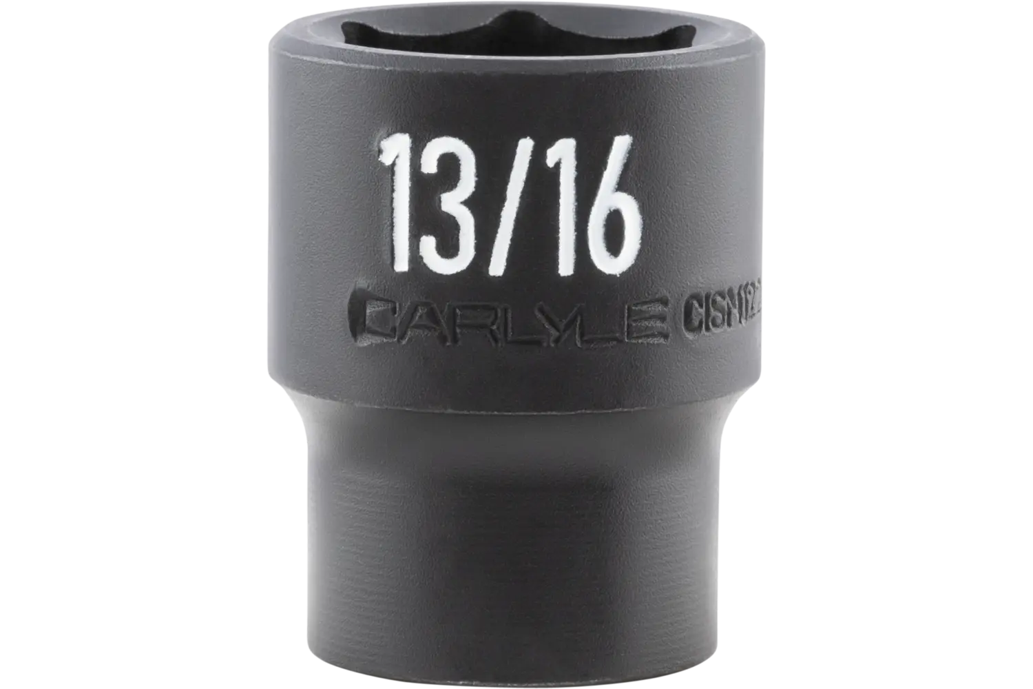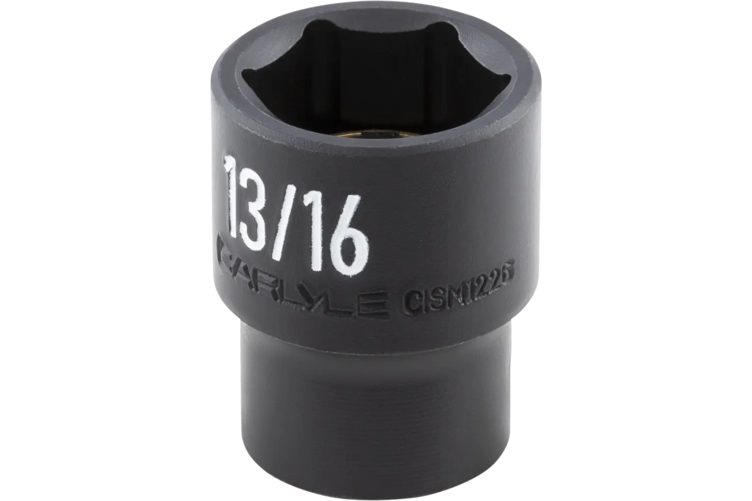 Presenting the Carlyle 1/2 in. Drive Standard Magnetic Impact Sockets - SAE, crafted for those who demand precision and strength in their tools. Constructed from premium chrome molybdenum alloy steel, these sockets are built to endure rigorous impact use while delivering exceptional performance. The innovative radius corner design offers a firm grip on fasteners, reducing wear and preventing rounding, while chamfered openings provide a quick and easy fit over fasteners. Featuring a shallow depth and 6-point design, these sockets maximize torque and contact, making them perfect for a variety of applications. The magnetic feature securely holds fasteners, enhancing efficiency and ease of use. Available in a broad range of SAE sizes, these sockets are an essential addition to any professional's toolkit, offering unparalleled durability and reliability.