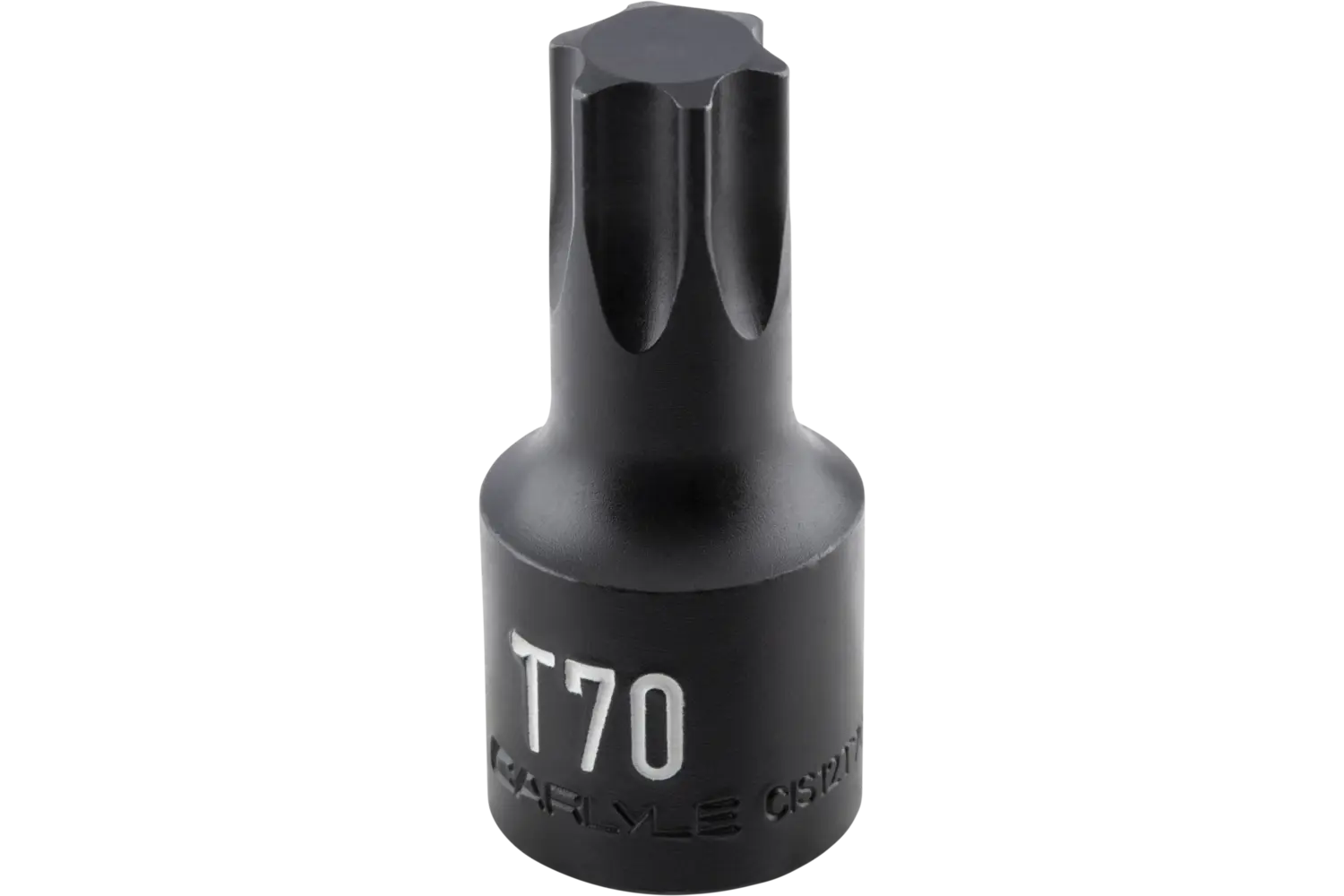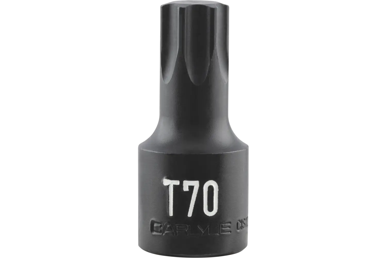 Elevate your toolkit with the Carlyle 1/2 in. Drive Standard Torx/Star Impact Sockets, crafted from premium chrome molybdenum alloy steel to providing exceptional strength and longevity. These impact sockets are designed with a radius corner for improved gripping on fasteners, minimizing wear and extending the lifespan of both the tool and fastener. The chamfered openings allow for a quicker and more efficient fit over fasteners, streamlining your workflow. Available in a versatile range of Torx sizes from T30 to T70, these sockets are perfect for handling a variety of tasks with precision. Whether you're engaged in automotive repairs or industrial projects, Carlyle's Standard Torx/Star Impact Sockets provide reliable and precise performance every time.