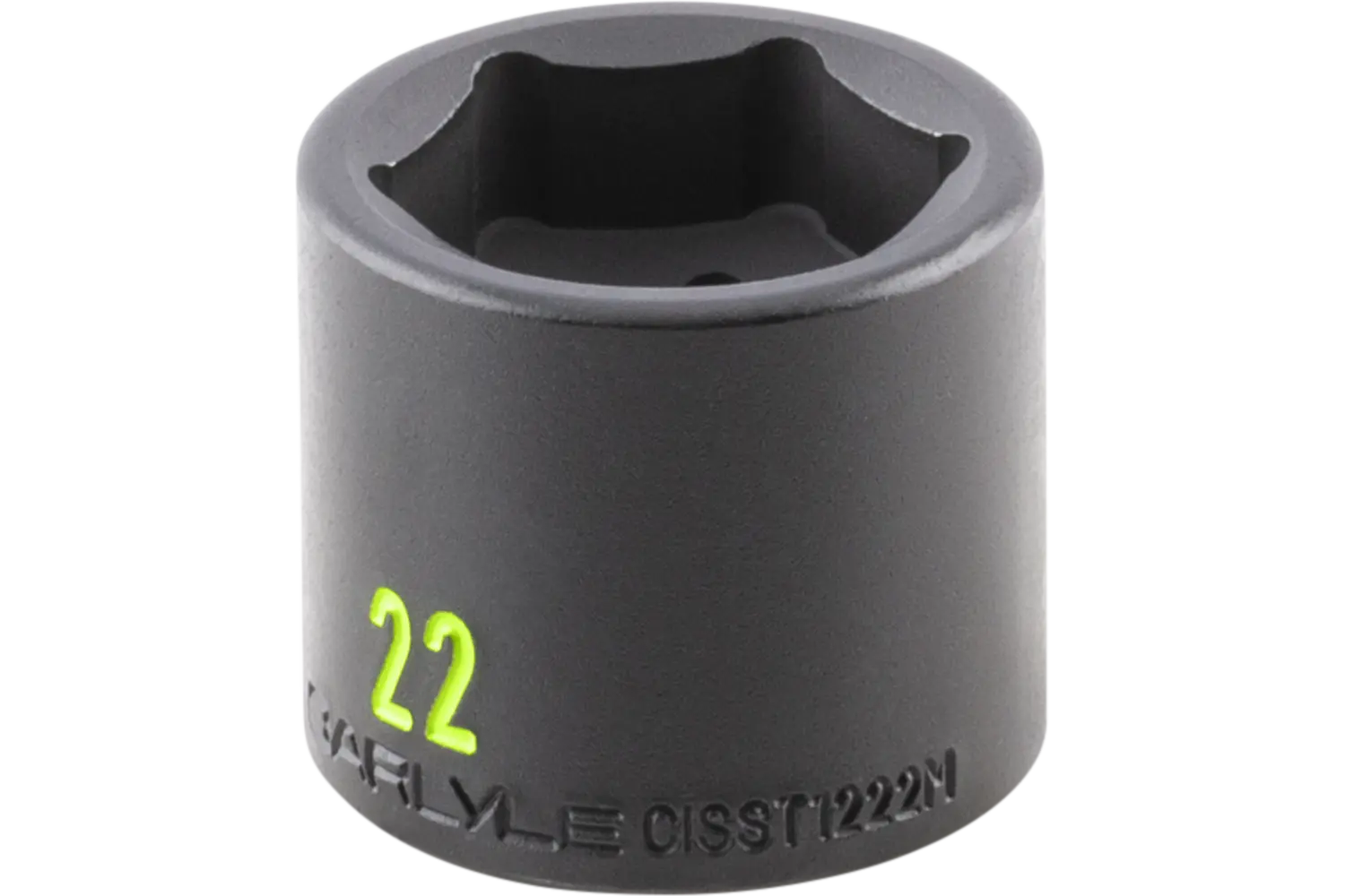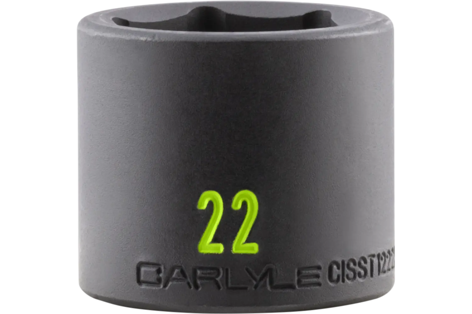 Discover the Carlyle 1/2 in. Drive Stubby Impact Sockets - Metric, expertly designed for performance in tight and confined spaces. These low-profile sockets are crafted from CR-MO material, providing exceptional strength and durability to withstand the demands of impact power and air tools. The black phosphate finish provides superior resistance to corrosion, extending the life of your tools even in harsh working environments. Perfect for professional mechanics and DIY enthusiasts alike, these sockets are available in a versatile range of sizes from 10mm to 24mm, making them an essential addition to any toolkit. Experience the perfect blend of compact design and robust performance with Carlyle Stubby Impact Sockets.