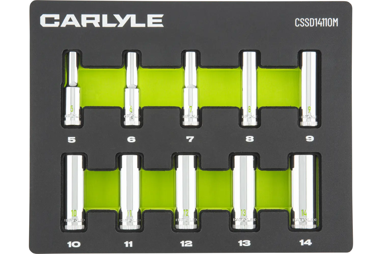 5mm, 6mm, 7mm, 8mm, 9mm, 10mm, 11mm, 12mm, 13mm, 14mm Chrome 12 Point Deep 10 PC EVA Foam