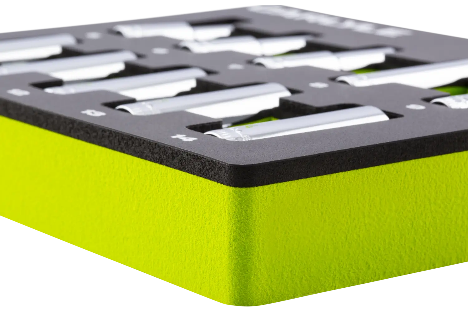 5mm, 6mm, 7mm, 8mm, 9mm, 10mm, 11mm, 12mm, 13mm, 14mm Chrome 6 Point Deep 10 PC EVA Foam
