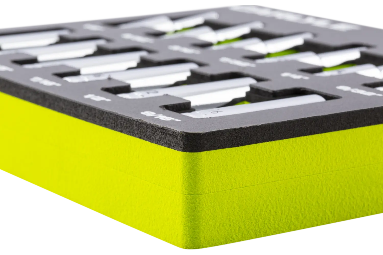 1/8in, 5/32in, 3/16in, 7/32in, 1/4in, 9/32in, 5/16in, 11/32in, 3/8in, 7/16in, 1/2in, 9/16in Chrome 12 Point Deep 12 PC EVA Foam