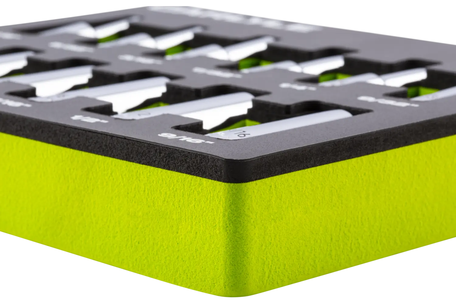 1/8in, 5/32in, 3/16in, 7/32in, 1/4in, 9/32in, 5/16in, 11/32in, 3/8in, 7/16in, 1/2in, 9/16in Chrome 12 Point Deep 12 PC EVA Foam