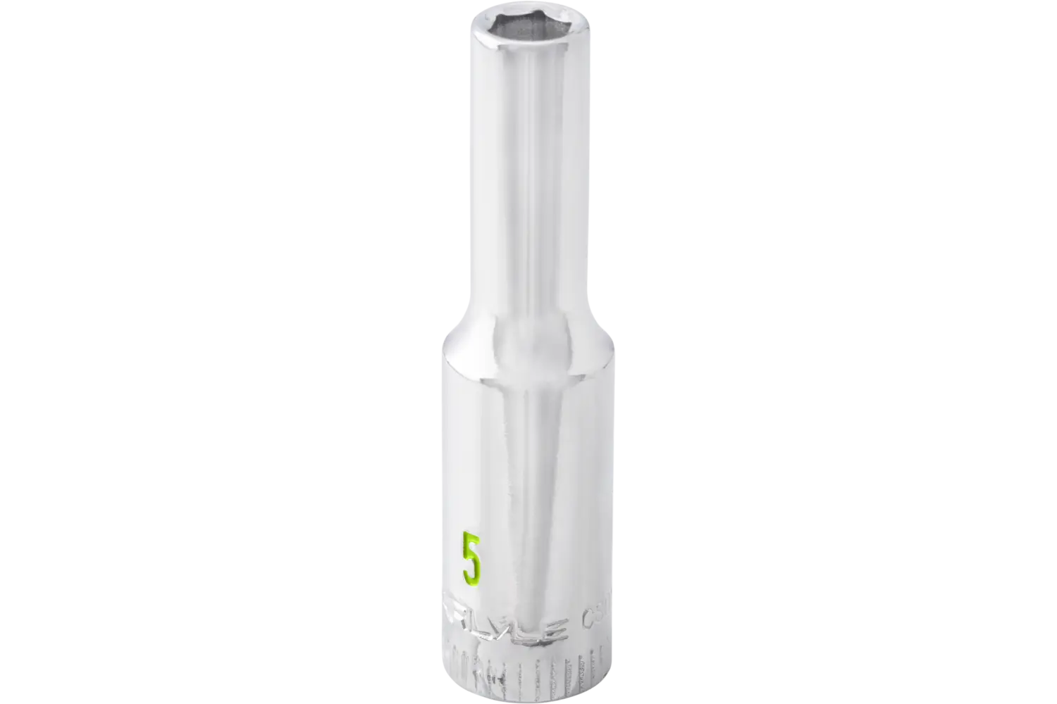 The Carlyle 1/4" Drive Deep Socket - Metric is a durable and precise tool for automotive tasks. Its 6-point design reduces wear on bolts and nuts while improving grip. The chrome finish resists rust, and the knurled markings make identification easy. Available in a range of sizes, this socket is a reliable choice for both professionals and DIY enthusiasts.