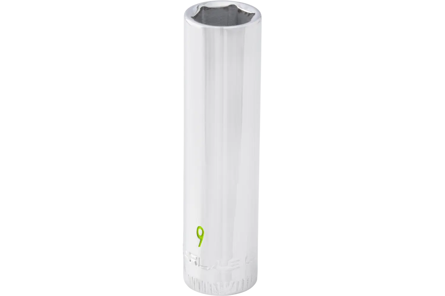 The Carlyle 1/4" Drive Deep Socket - Metric is a durable and precise tool for automotive tasks. Its 6-point design reduces wear on bolts and nuts while improving grip. The chrome finish resists rust, and the knurled markings make identification easy. Available in a range of sizes, this socket is a reliable choice for both professionals and DIY enthusiasts.