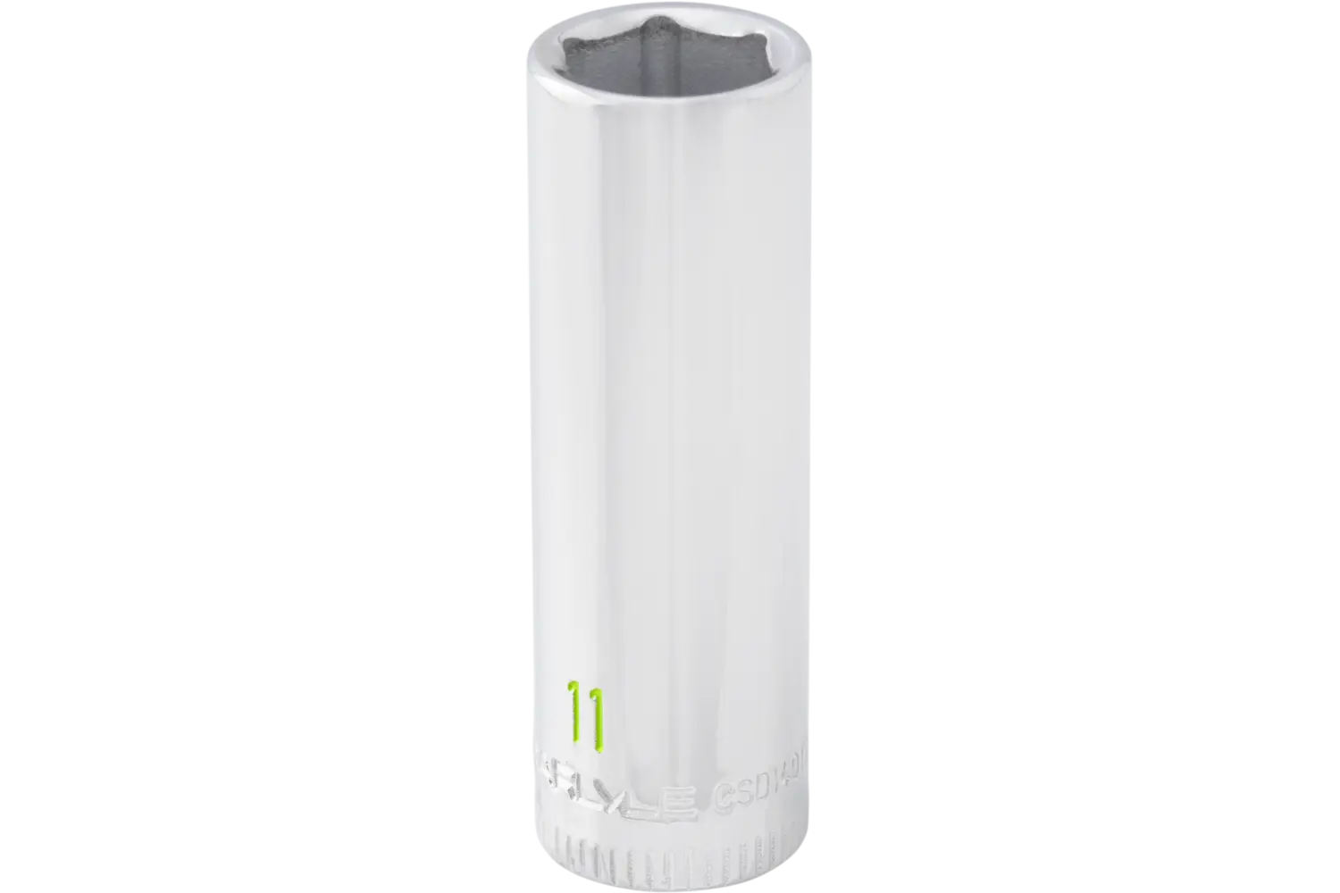 The Carlyle 1/4" Drive Deep Socket - Metric is a durable and precise tool for automotive tasks. Its 6-point design reduces wear on bolts and nuts while improving grip. The chrome finish resists rust, and the knurled markings make identification easy. Available in a range of sizes, this socket is a reliable choice for both professionals and DIY enthusiasts.