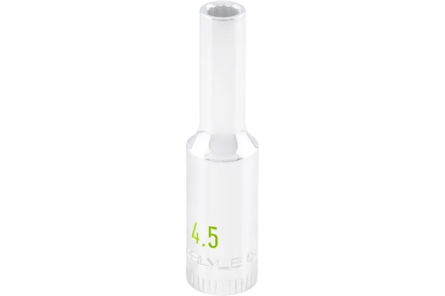 The Carlyle 1/4" Drive Deep Socket - Metric is a durable and precise tool for automotive tasks. Its 6-point design reduces wear on bolts and nuts while improving grip. The chrome finish resists rust, and the knurled markings make identification easy. Available in a range of sizes, this socket is a reliable choice for both professionals and DIY enthusiasts.