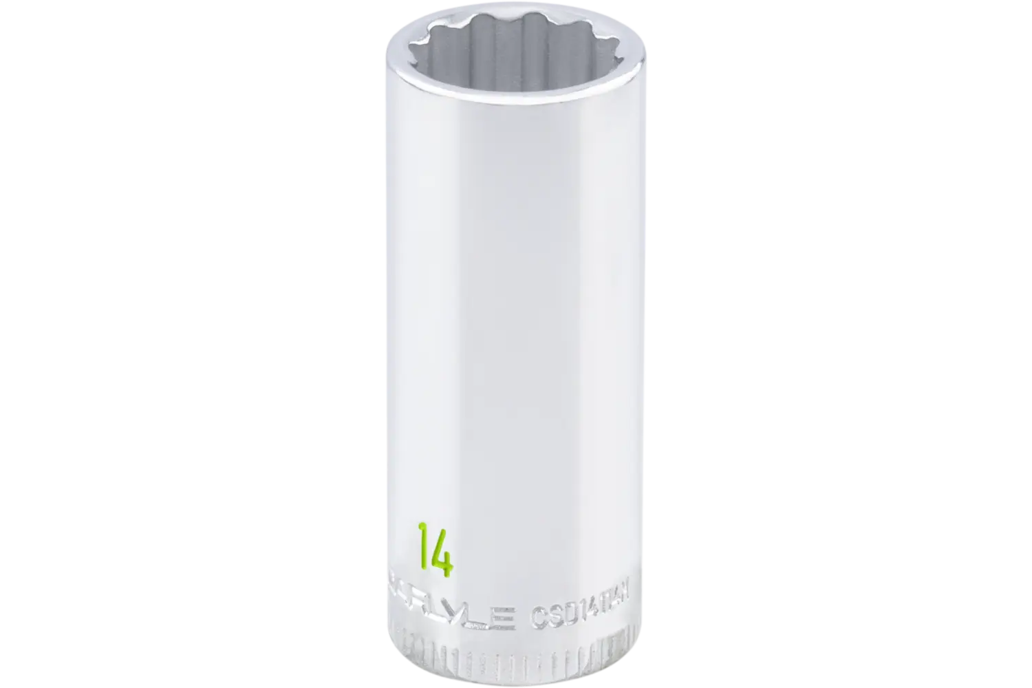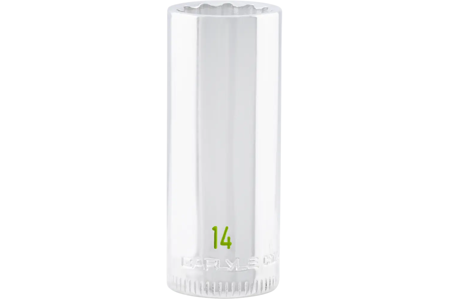 The Carlyle 1/4" Drive Deep Socket - Metric is a durable and precise tool for automotive tasks. Its 6-point design reduces wear on bolts and nuts while improving grip. The chrome finish resists rust, and the knurled markings make identification easy. Available in a range of sizes, this socket is a reliable choice for both professionals and DIY enthusiasts.