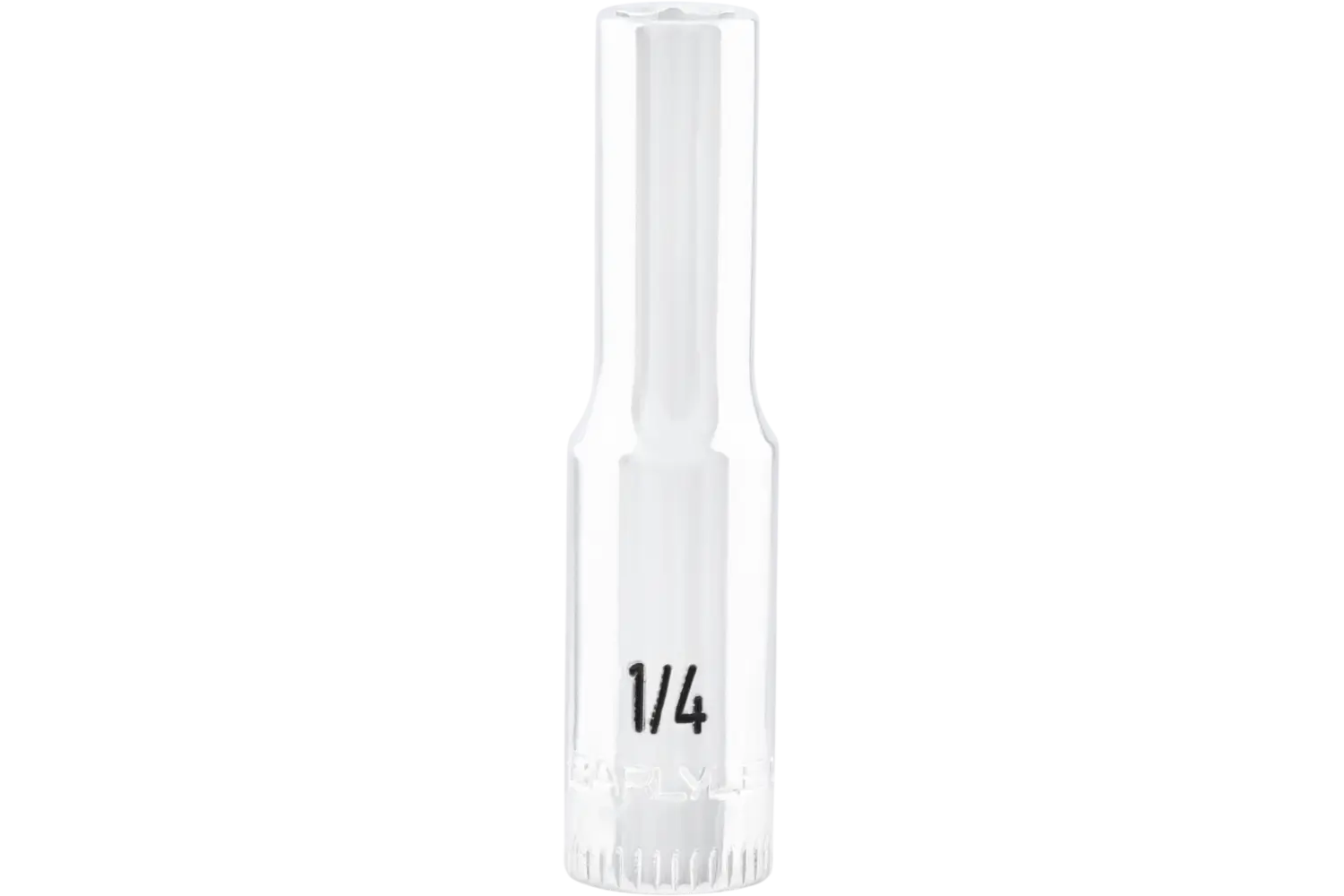 The Carlyle 1/4" Drive Deep Socket - SAE is a reliable tool for mechanics and DIY enthusiasts. Featuring 6-point and 12-point designs, it reduces wear on fasteners and provides a secure fit. The polished chrome finish resists rust, and the knurled markings make tool selection quick and easy. This socket is a valuable addition to any toolkit.