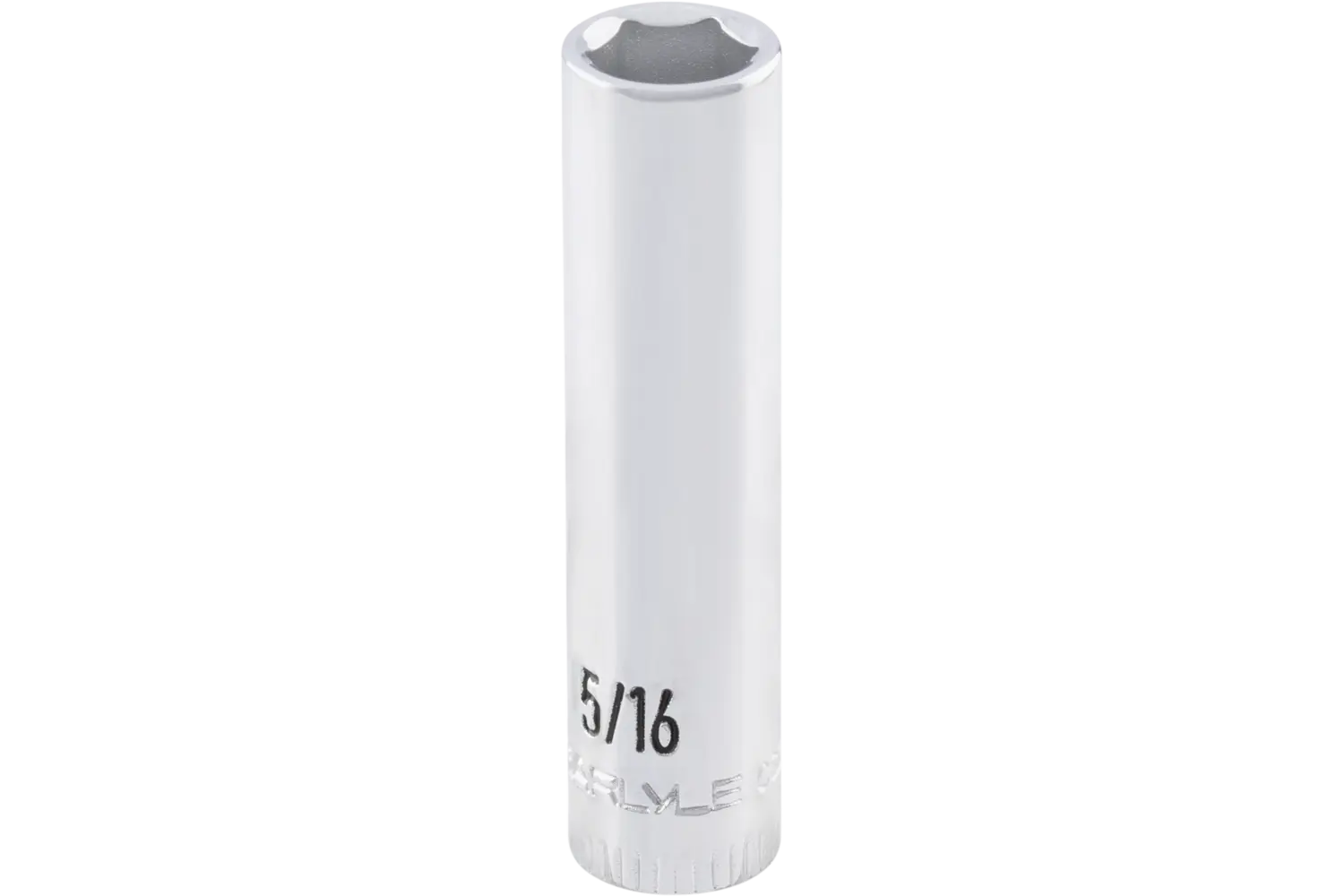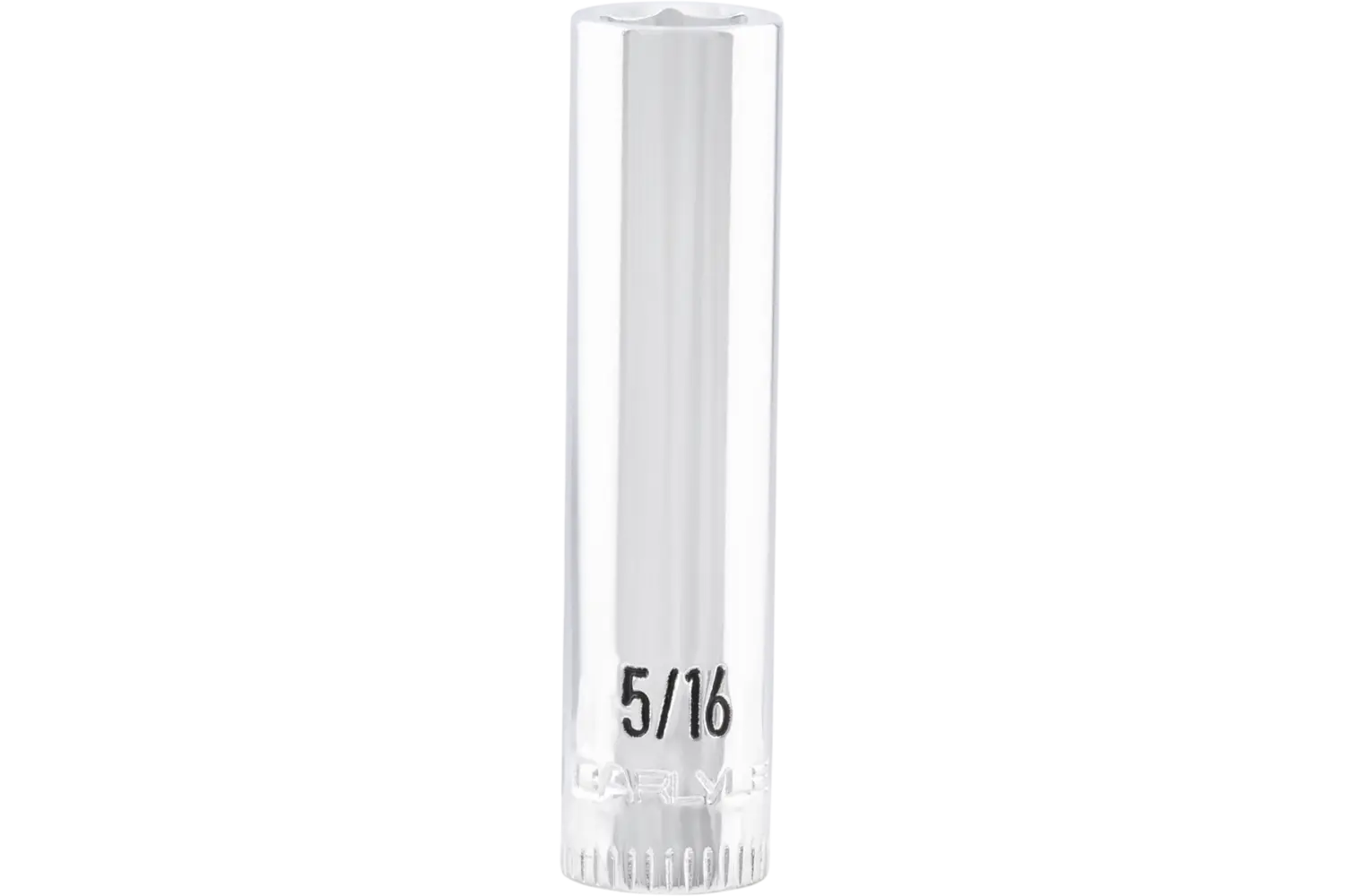 The Carlyle 1/4" Drive Deep Socket - SAE is a reliable tool for mechanics and DIY enthusiasts. Featuring 6-point and 12-point designs, it reduces wear on fasteners and provides a secure fit. The polished chrome finish resists rust, and the knurled markings make tool selection quick and easy. This socket is a valuable addition to any toolkit.