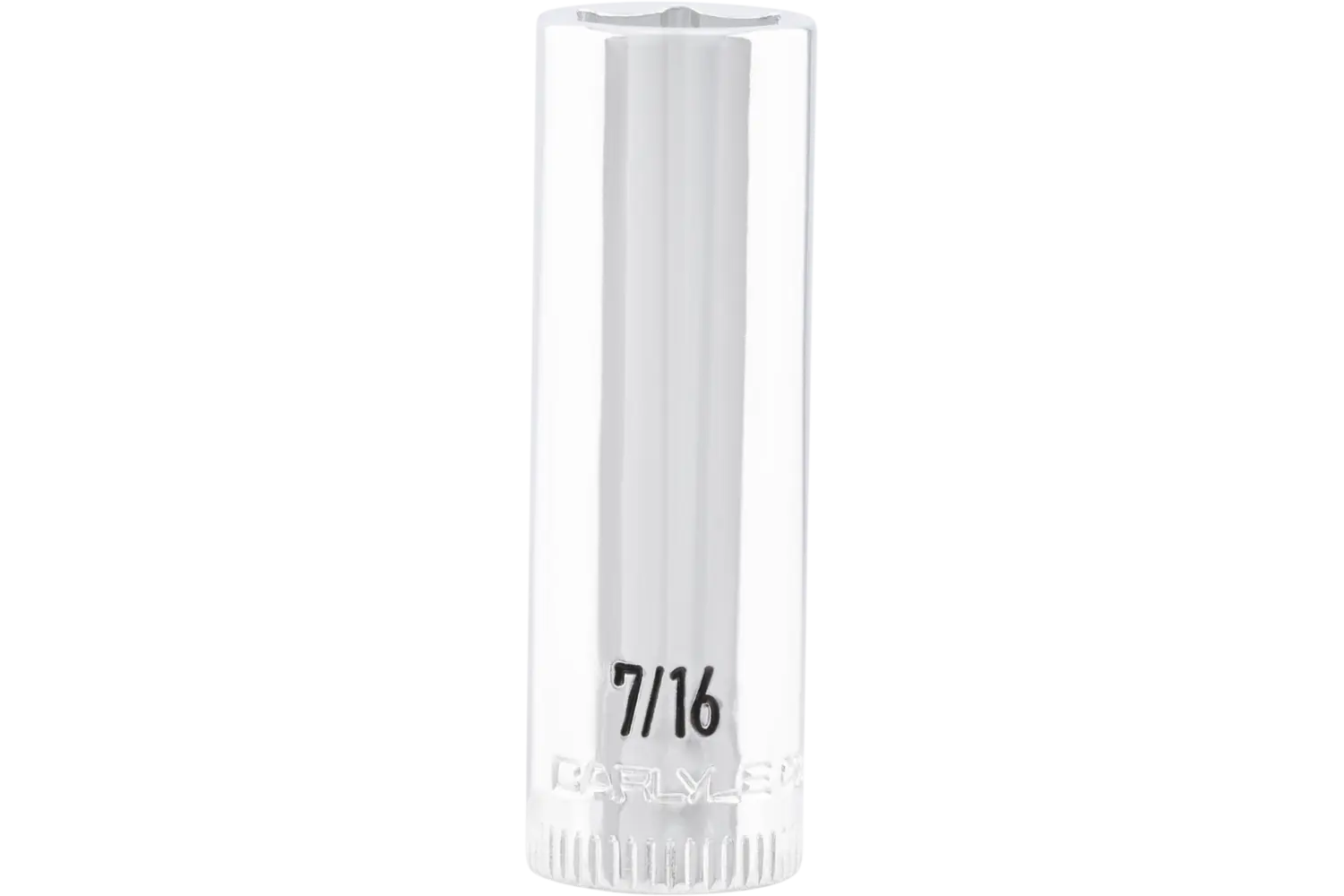 The Carlyle 1/4" Drive Deep Socket - SAE is a reliable tool for mechanics and DIY enthusiasts. Featuring 6-point and 12-point designs, it reduces wear on fasteners and provides a secure fit. The polished chrome finish resists rust, and the knurled markings make tool selection quick and easy. This socket is a valuable addition to any toolkit.