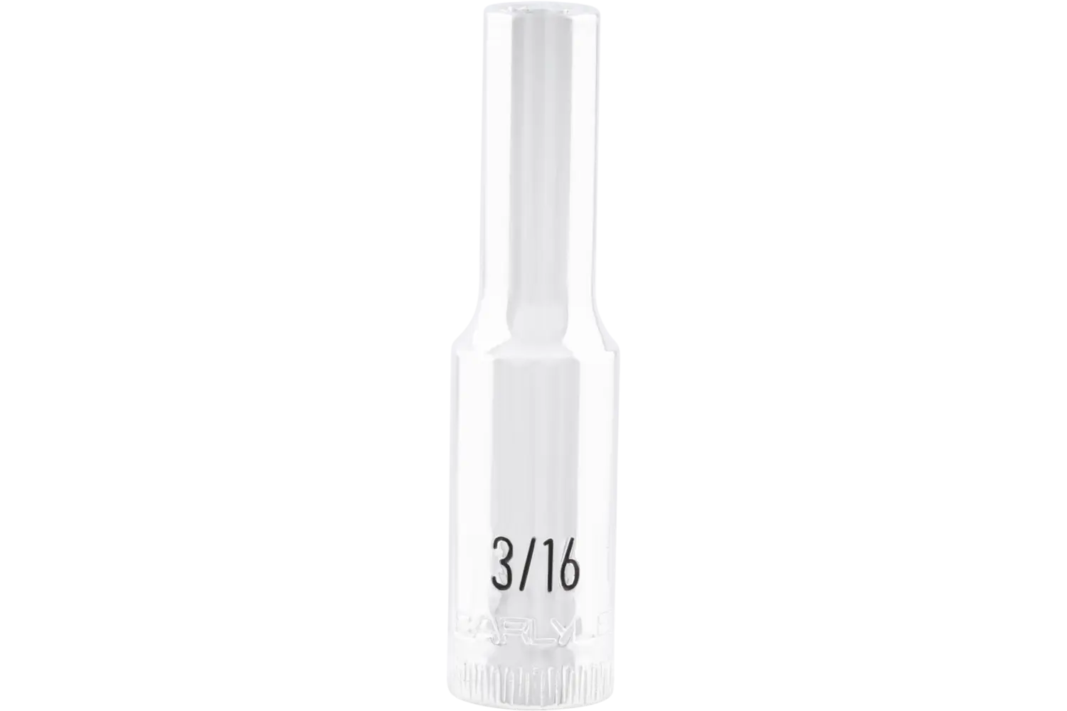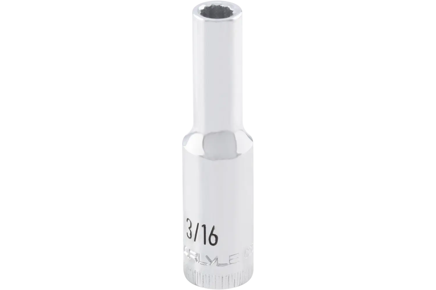 The Carlyle 1/4" Drive Deep Socket - SAE is a reliable tool for mechanics and DIY enthusiasts. Featuring 6-point and 12-point designs, it reduces wear on fasteners and provides a secure fit. The polished chrome finish resists rust, and the knurled markings make tool selection quick and easy. This socket is a valuable addition to any toolkit.