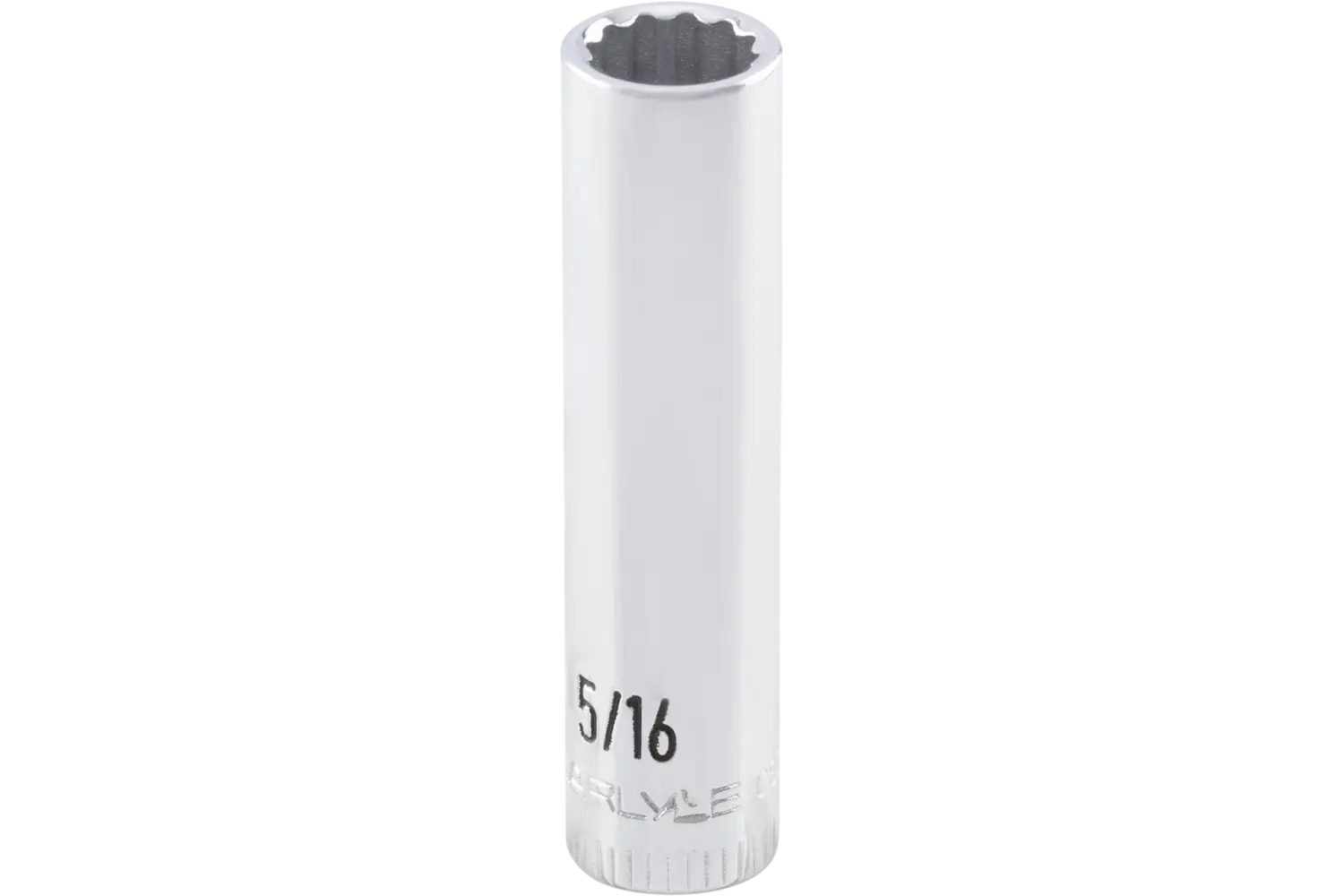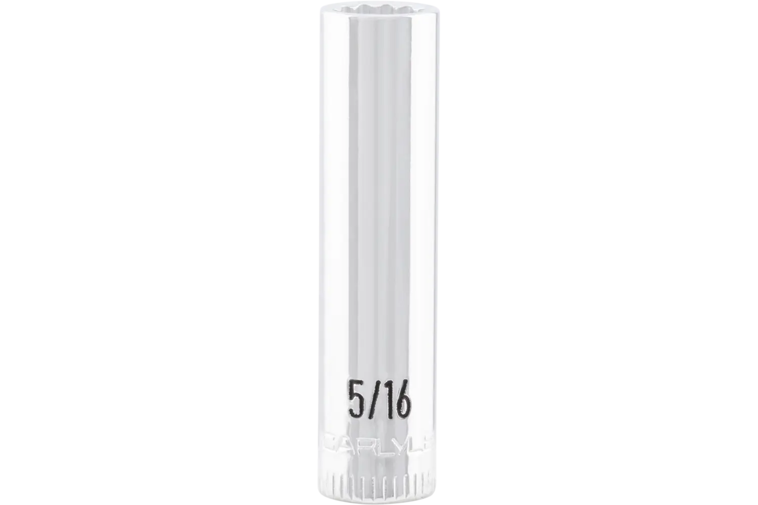 The Carlyle 1/4" Drive Deep Socket - SAE is a reliable tool for mechanics and DIY enthusiasts. Featuring 6-point and 12-point designs, it reduces wear on fasteners and provides a secure fit. The polished chrome finish resists rust, and the knurled markings make tool selection quick and easy. This socket is a valuable addition to any toolkit.
