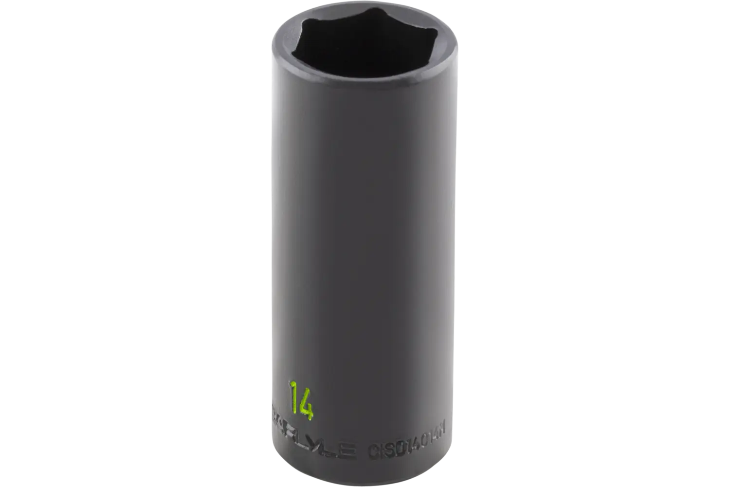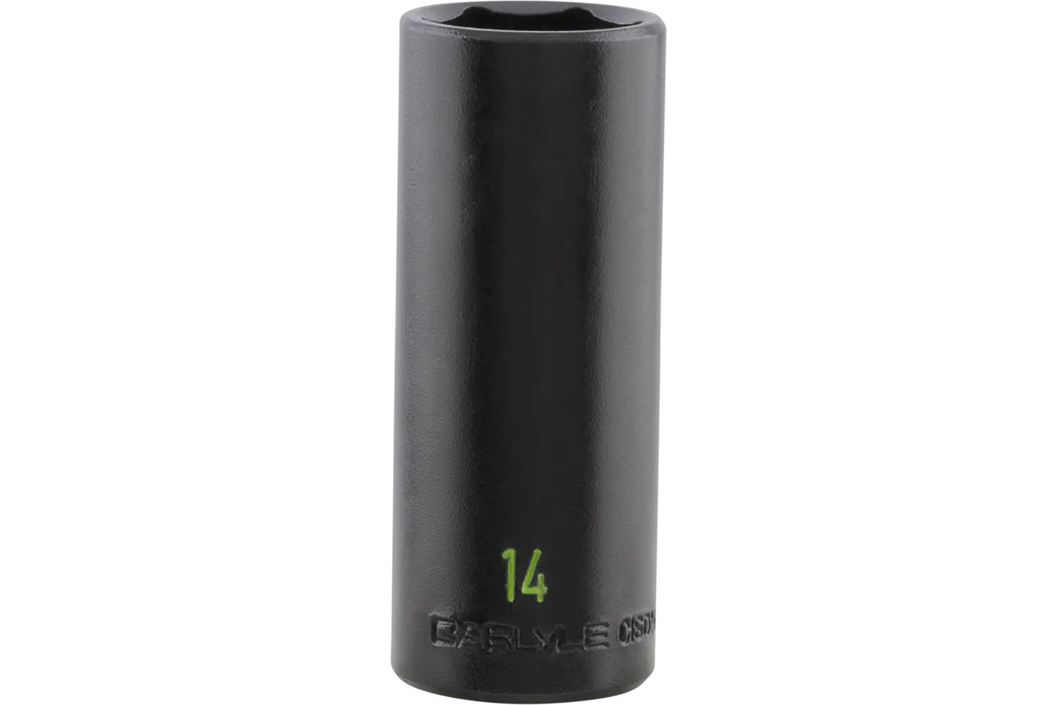 The Carlyle Tools 1/4" Drive 6 Pt. Deep Impact Socket is a durable tool for use with impact power tools. Its 6-point design enhances grip and reduces fastener wear, while the black phosphate finish provides corrosion resistance. Crafted from robust materials, this socket is built for tough tasks and is a valuable addition to any toolkit.