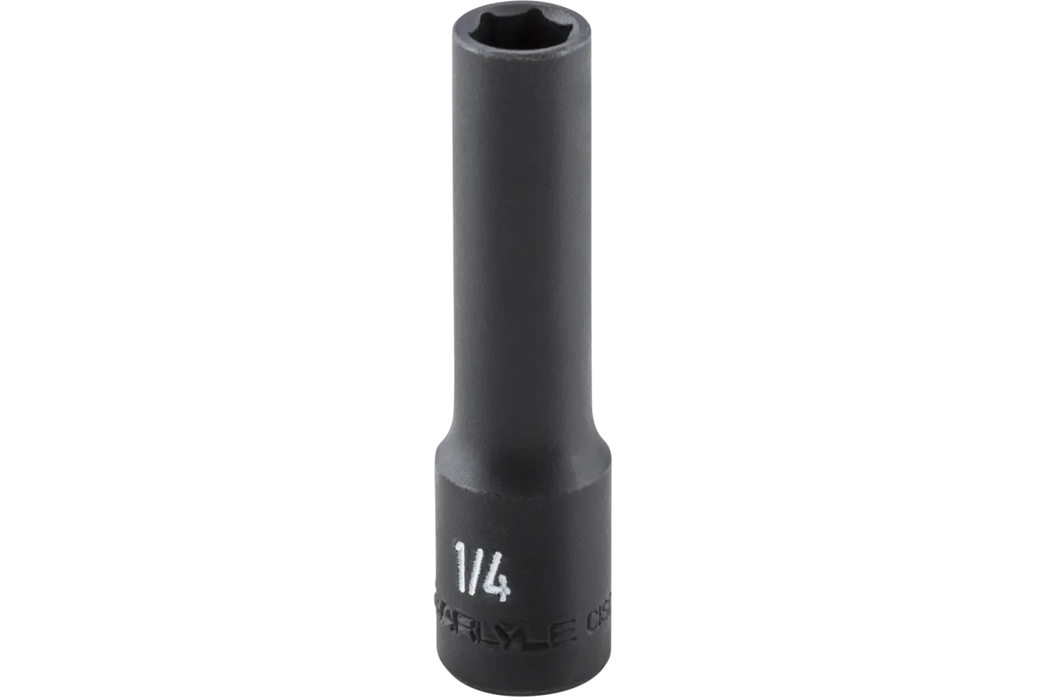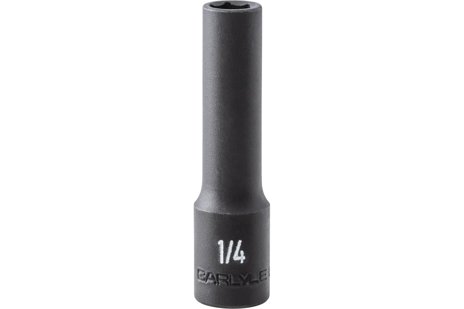 The Carlyle 1/4" Drive 6 Pt. Deep Impact Socket - SAE is a durable tool for automotive tasks. Its 6-point design provides secure grip and reduces fastener wear. The black phosphate finish protects against corrosion, making this socket a reliable choice for tough jobs.