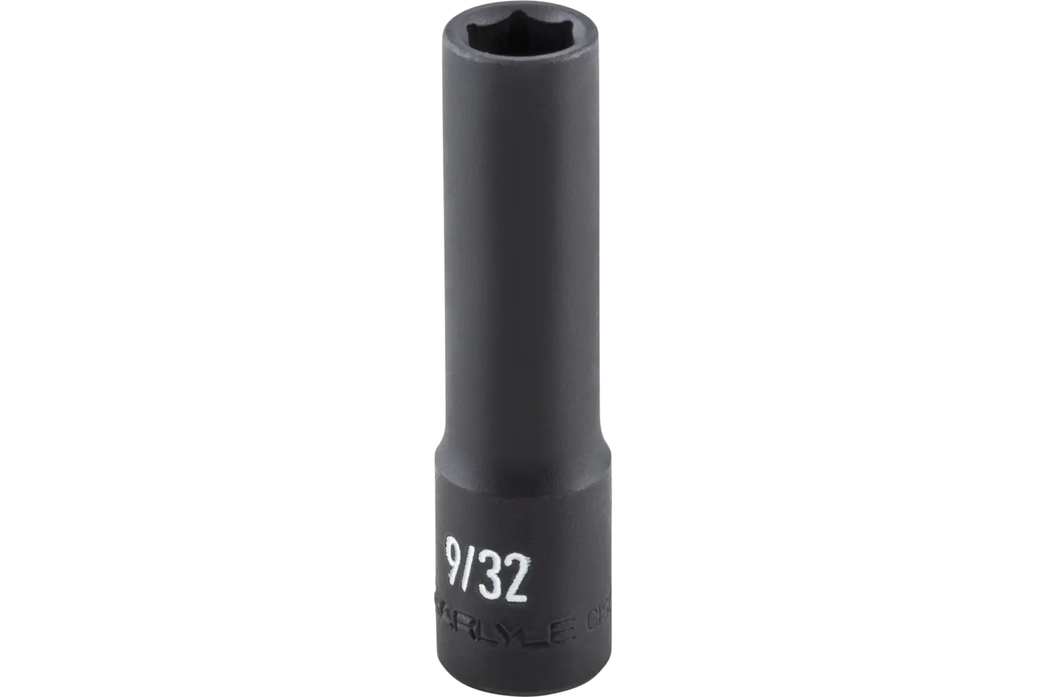 The Carlyle 1/4" Drive 6 Pt. Deep Impact Socket - SAE is a durable tool for automotive tasks. Its 6-point design provides secure grip and reduces fastener wear. The black phosphate finish protects against corrosion, making this socket a reliable choice for tough jobs.