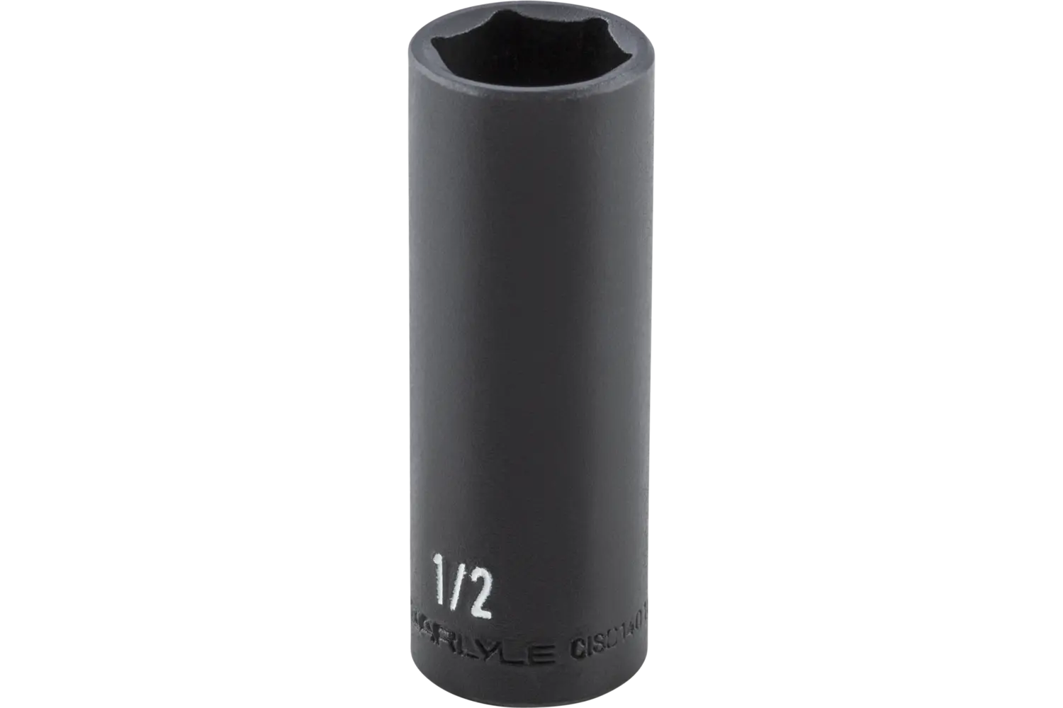 The Carlyle 1/4" Drive 6 Pt. Deep Impact Socket - SAE is a durable tool for automotive tasks. Its 6-point design provides secure grip and reduces fastener wear. The black phosphate finish protects against corrosion, making this socket a reliable choice for tough jobs.