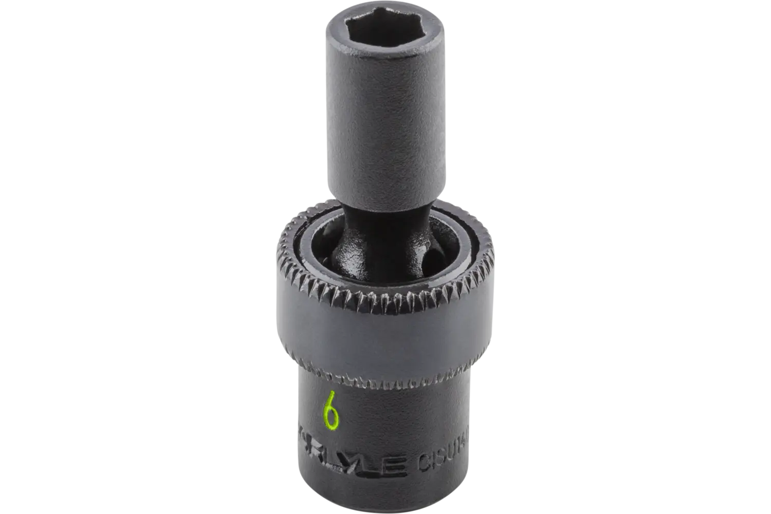 The Carlyle 1/4" Drive 6 Pt. Swivel Impact Socket - Metric is designed for precision in confined spaces. Its 6-point design reduces fastener wear, while the black phosphate finish resists corrosion. Built from durable materials, this socket is a reliable tool for demanding tasks.