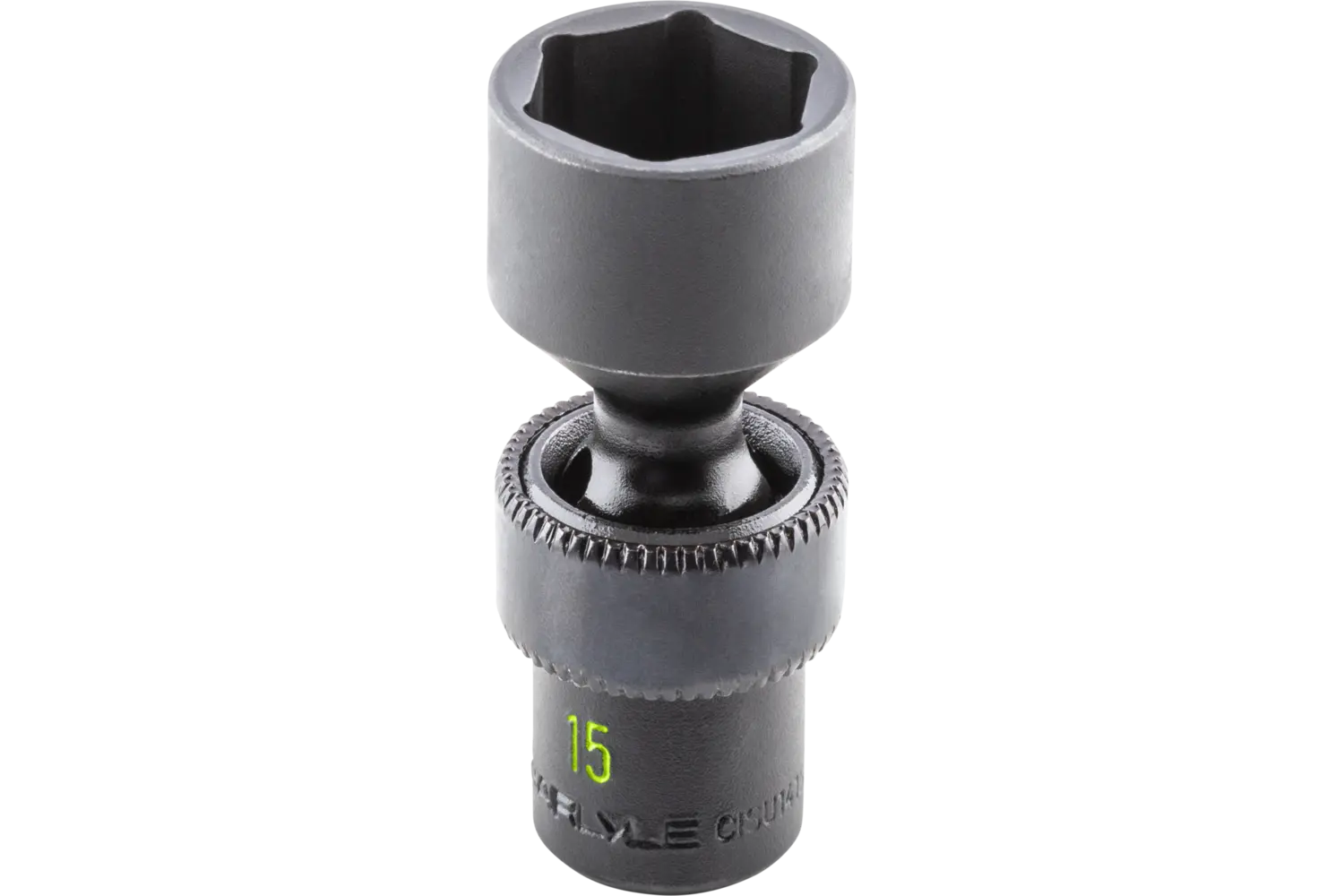 The Carlyle 1/4" Drive 6 Pt. Swivel Impact Socket - Metric is designed for precision in confined spaces. Its 6-point design reduces fastener wear, while the black phosphate finish resists corrosion. Built from durable materials, this socket is a reliable tool for demanding tasks.