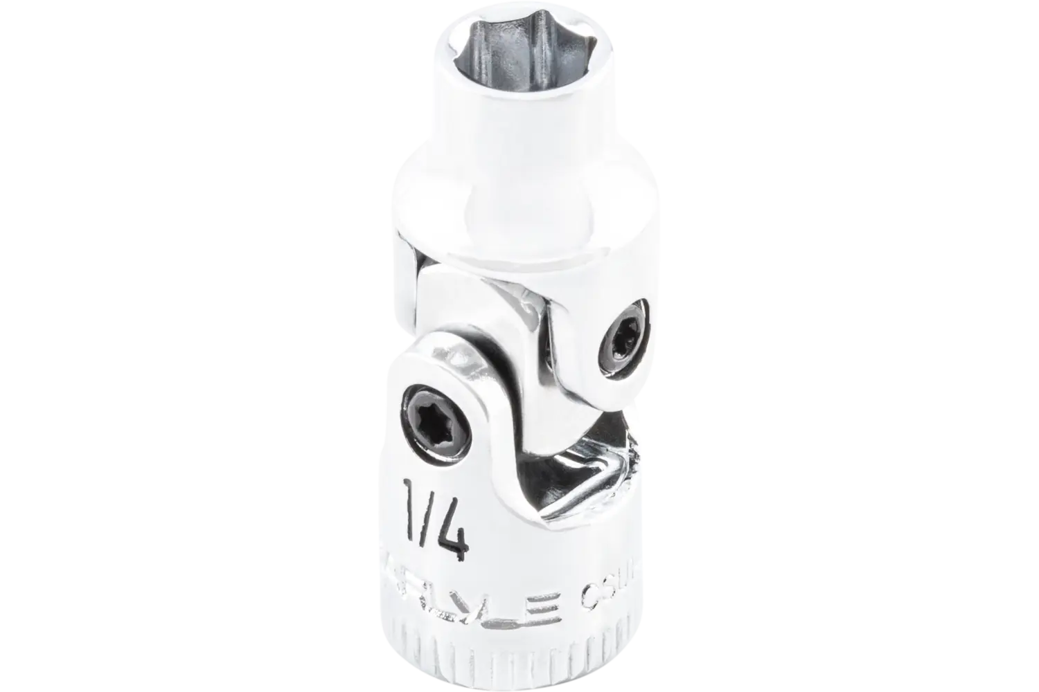 The Carlyle 1/4" Drive Flex Socket - SAE is a practical tool for accessing hard-to-reach areas. Its universal joint enhances accessibility, while the radius-cornered design reduces wear on fasteners. The polished chrome finish resists rust, and the knurled markings allow for quick identification. This socket is a versatile and durable addition to any toolkit.