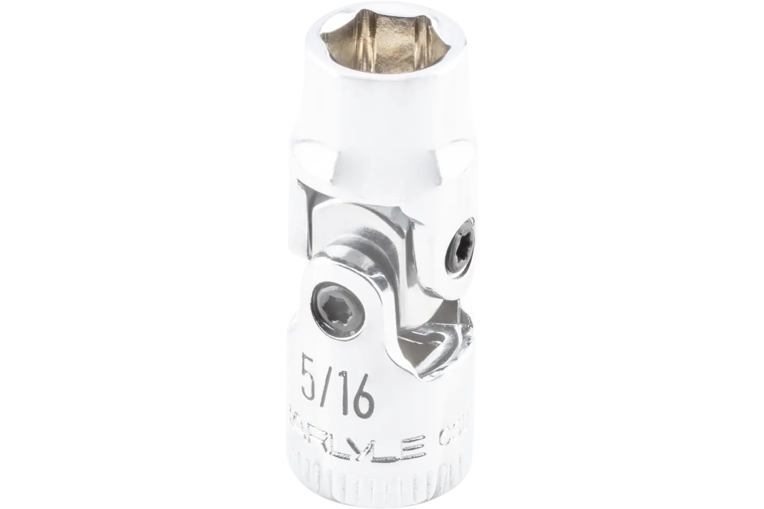 The Carlyle 1/4" Drive Flex Socket - SAE is a practical tool for accessing hard-to-reach areas. Its universal joint enhances accessibility, while the radius-cornered design reduces wear on fasteners. The polished chrome finish resists rust, and the knurled markings allow for quick identification. This socket is a versatile and durable addition to any toolkit.