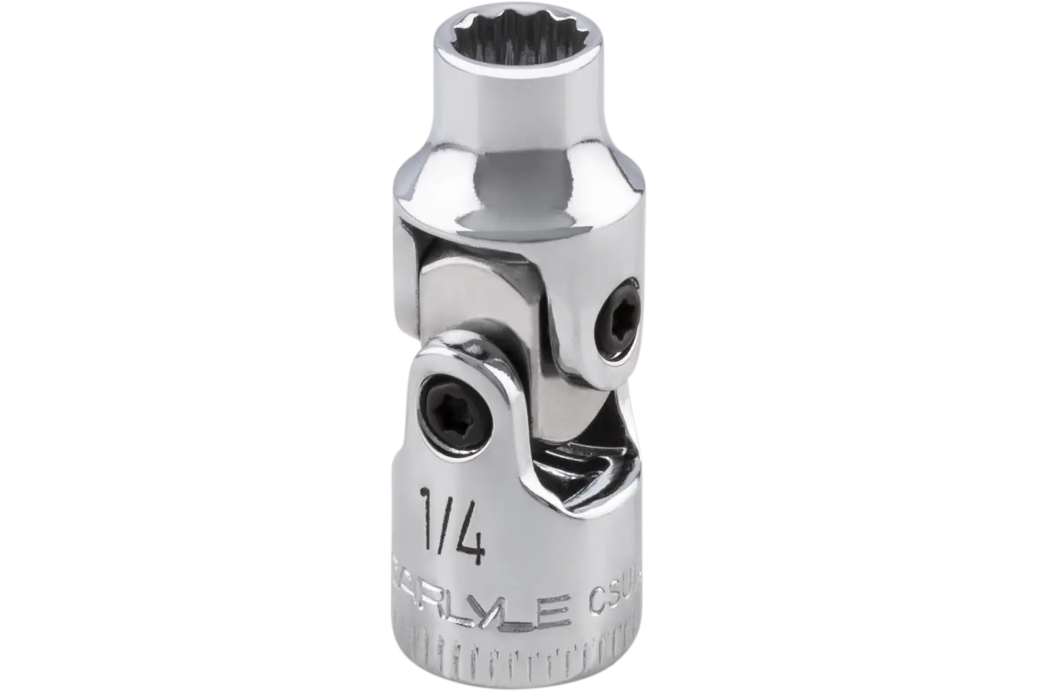 The Carlyle 1/4" Drive Flex Socket - SAE is a practical tool for accessing hard-to-reach areas. Its universal joint enhances accessibility, while the radius-cornered design reduces wear on fasteners. The polished chrome finish resists rust, and the knurled markings allow for quick identification. This socket is a versatile and durable addition to any toolkit.