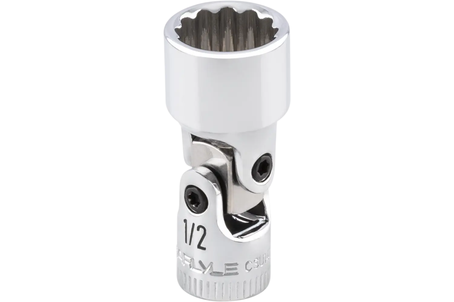 The Carlyle 1/4" Drive Flex Socket - SAE is a practical tool for accessing hard-to-reach areas. Its universal joint enhances accessibility, while the radius-cornered design reduces wear on fasteners. The polished chrome finish resists rust, and the knurled markings allow for quick identification. This socket is a versatile and durable addition to any toolkit.