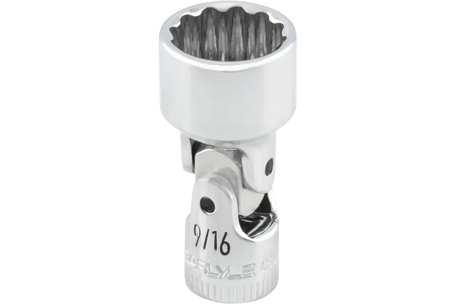 The Carlyle 1/4" Drive Flex Socket - SAE is a practical tool for accessing hard-to-reach areas. Its universal joint enhances accessibility, while the radius-cornered design reduces wear on fasteners. The polished chrome finish resists rust, and the knurled markings allow for quick identification. This socket is a versatile and durable addition to any toolkit.