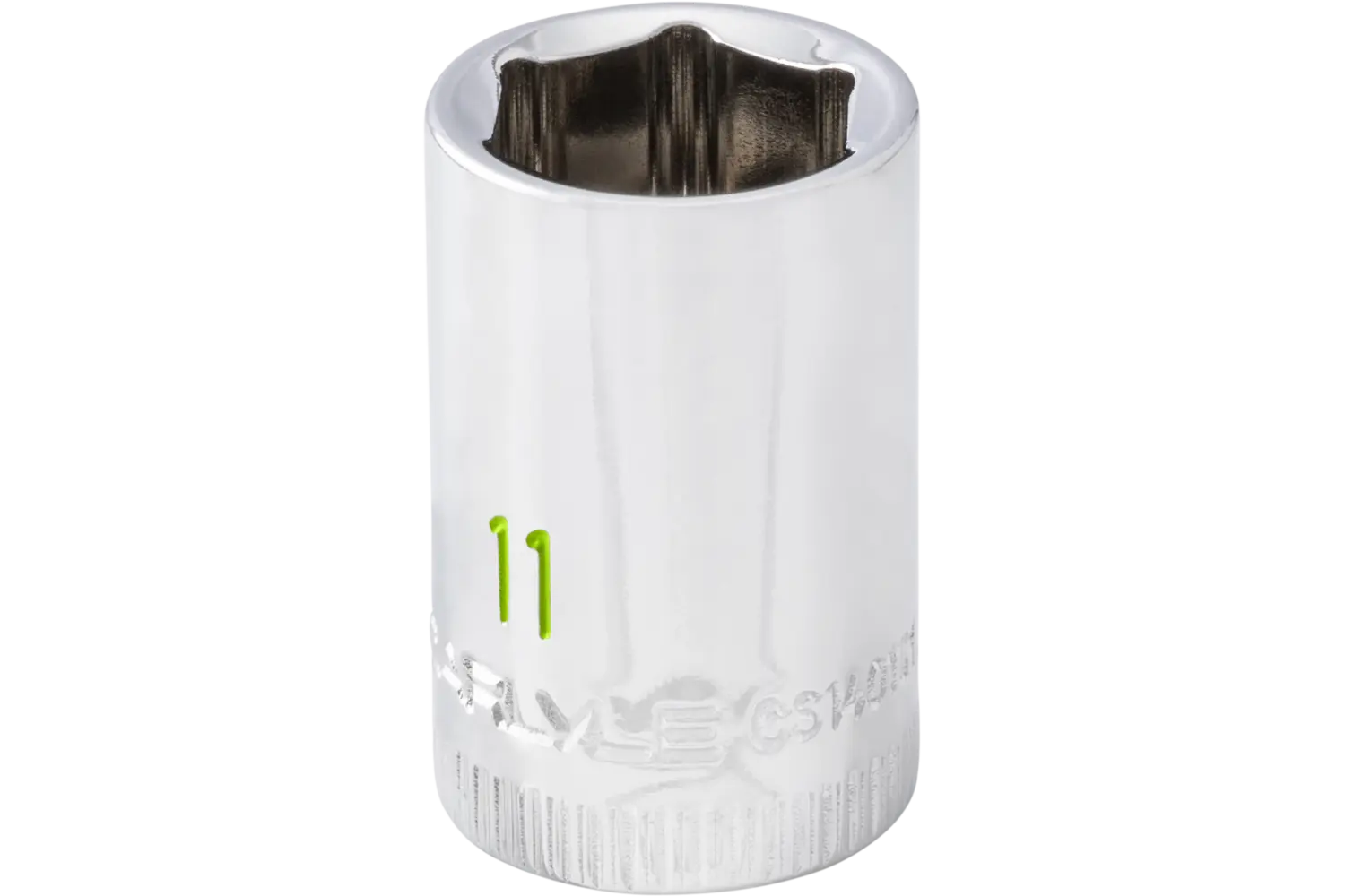 The Carlyle 1/4" Drive Socket - Metric is a versatile tool available in 6-point or 12-point designs. It minimizes wear on fasteners while providing a secure grip. The polished chrome finish offers rust resistance, and the knurled markings allow for easy identification. This socket is a practical addition to any toolkit, suitable for a variety of tasks.