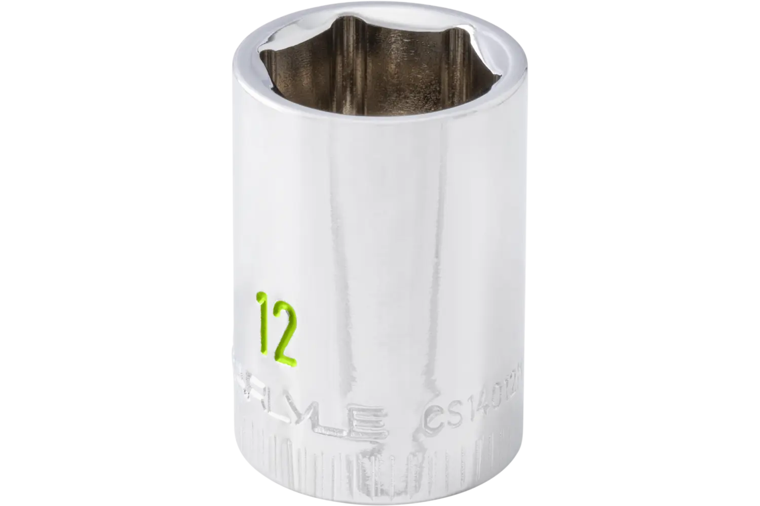 The Carlyle 1/4" Drive Socket - Metric is a versatile tool available in 6-point or 12-point designs. It minimizes wear on fasteners while providing a secure grip. The polished chrome finish offers rust resistance, and the knurled markings allow for easy identification. This socket is a practical addition to any toolkit, suitable for a variety of tasks.