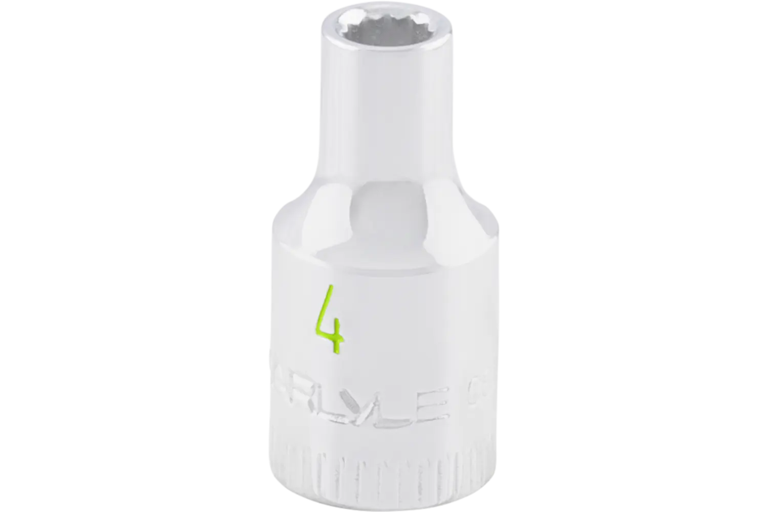 The Carlyle 1/4" Drive Socket - Metric is a versatile tool available in 6-point or 12-point designs. It minimizes wear on fasteners while providing a secure grip. The polished chrome finish offers rust resistance, and the knurled markings allow for easy identification. This socket is a practical addition to any toolkit, suitable for a variety of tasks.