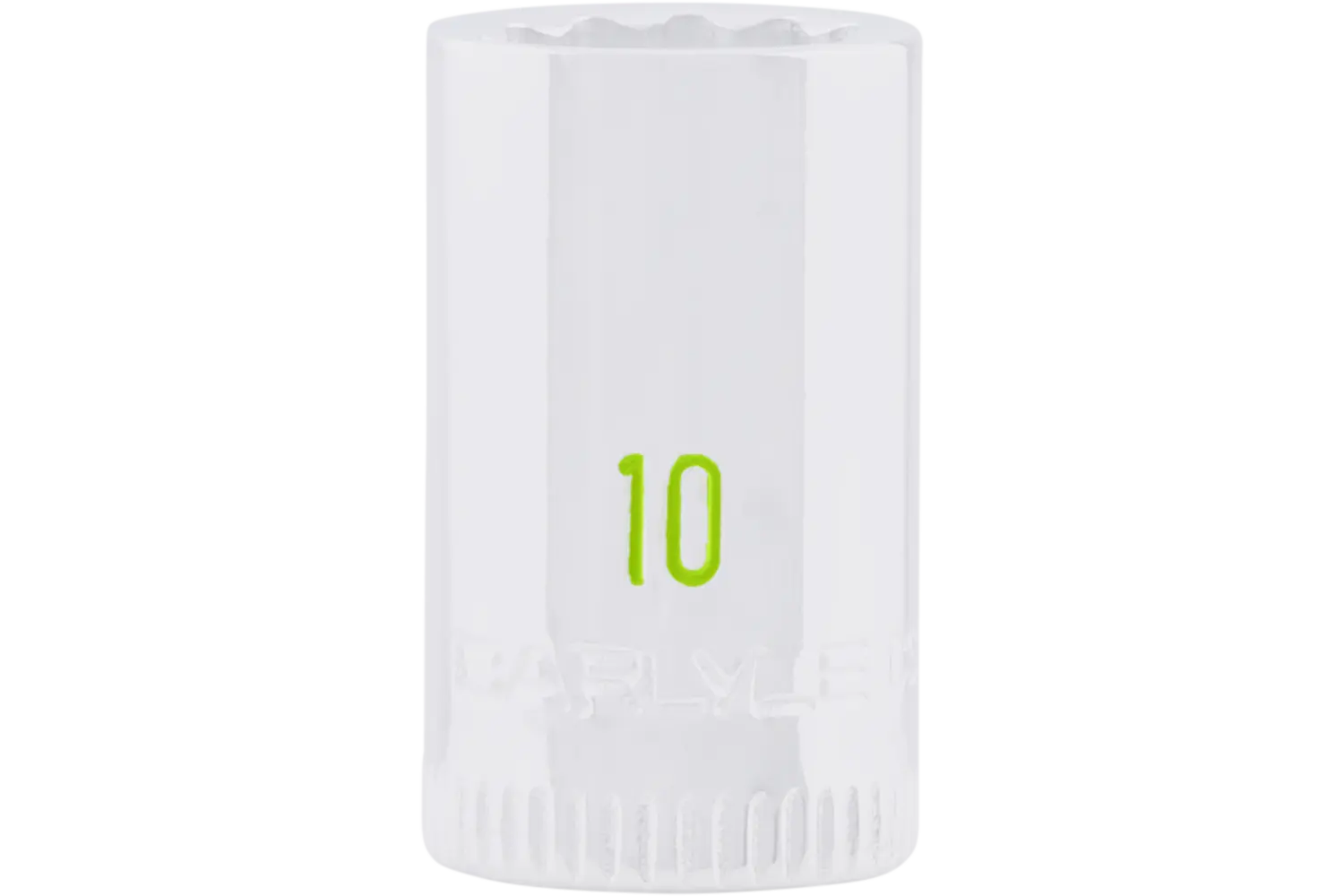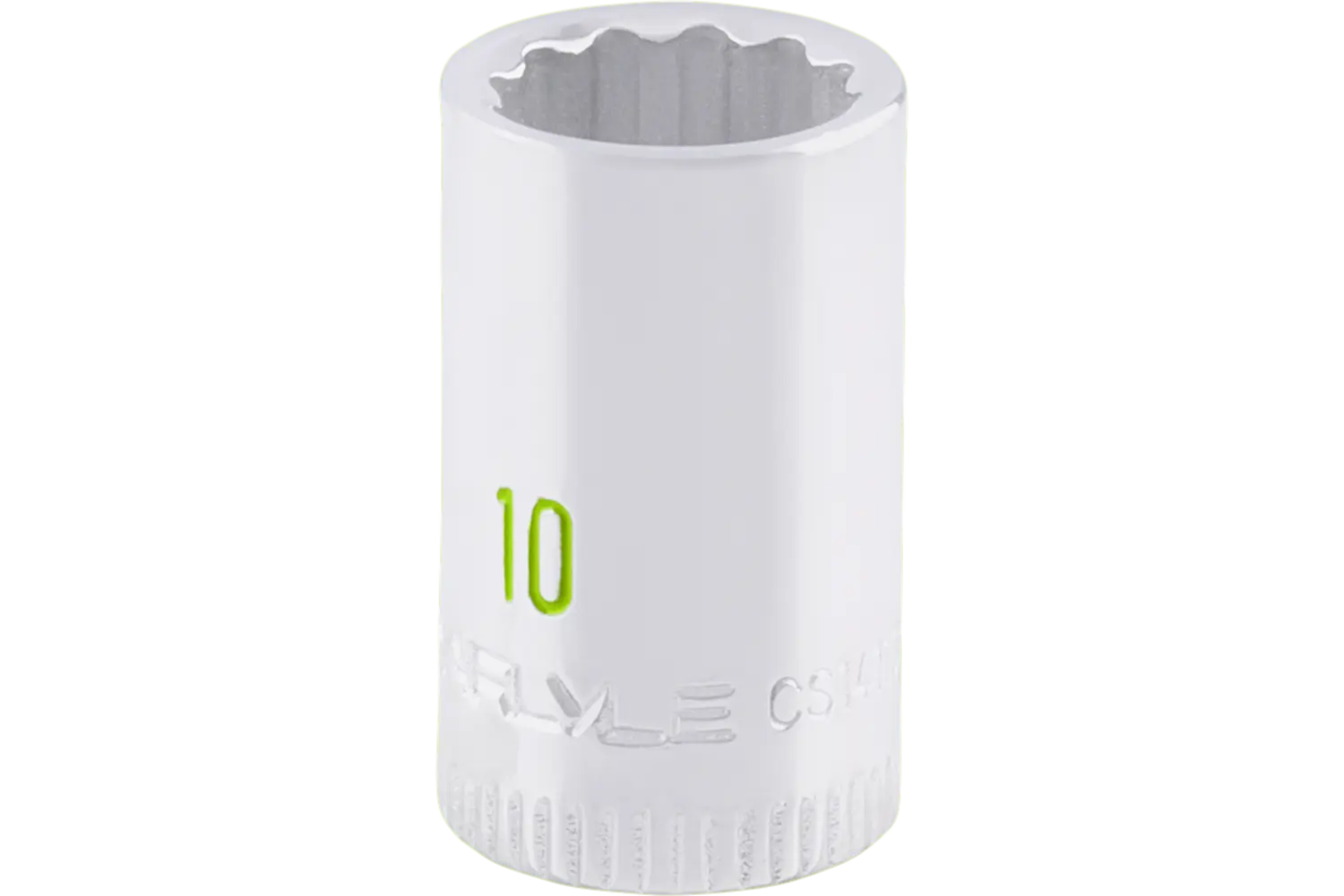 The Carlyle 1/4" Drive Socket - Metric is a versatile tool available in 6-point or 12-point designs. It minimizes wear on fasteners while providing a secure grip. The polished chrome finish offers rust resistance, and the knurled markings allow for easy identification. This socket is a practical addition to any toolkit, suitable for a variety of tasks.