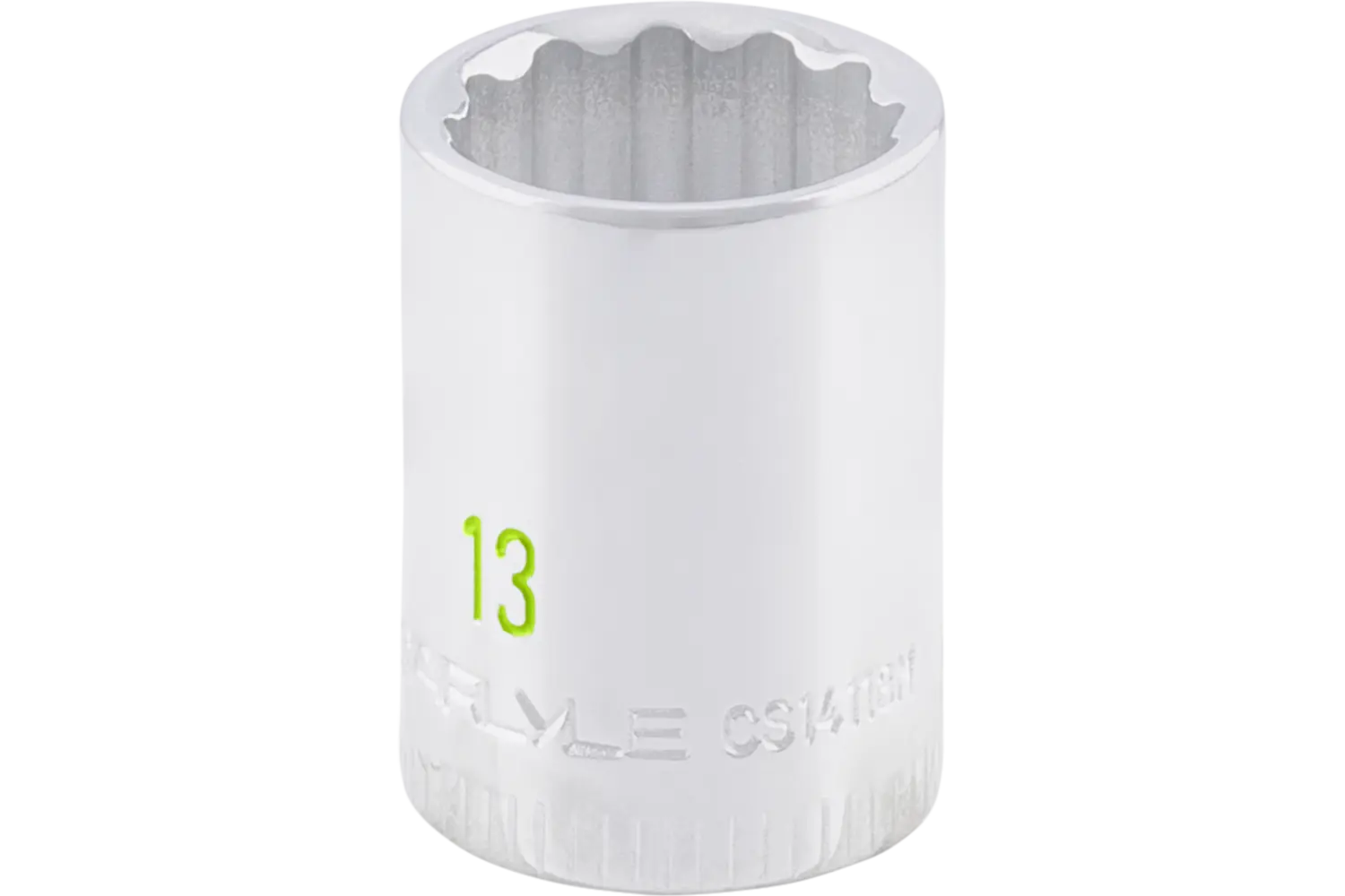 The Carlyle 1/4" Drive Socket - Metric is a versatile tool available in 6-point or 12-point designs. It minimizes wear on fasteners while providing a secure grip. The polished chrome finish offers rust resistance, and the knurled markings allow for easy identification. This socket is a practical addition to any toolkit, suitable for a variety of tasks.