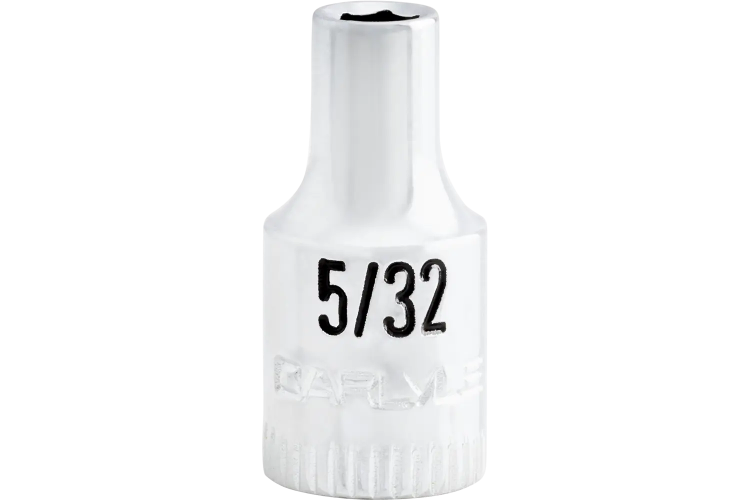 The Carlyle 1/4" Drive 6 Pt. SAE Socket is a precision tool for automotive tasks. Its 6-point design provides secure grip and reduces fastener wear. The polished chrome finish resists rust, and the knurled markings make it easy to identify. This socket is a dependable choice for mechanics and DIY enthusiasts.