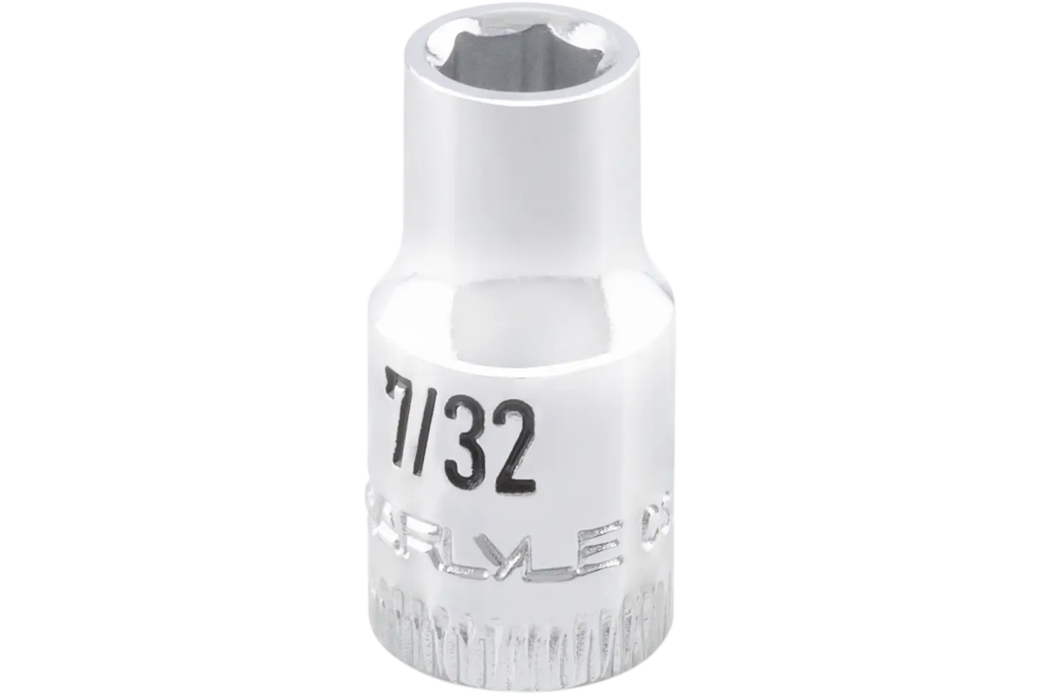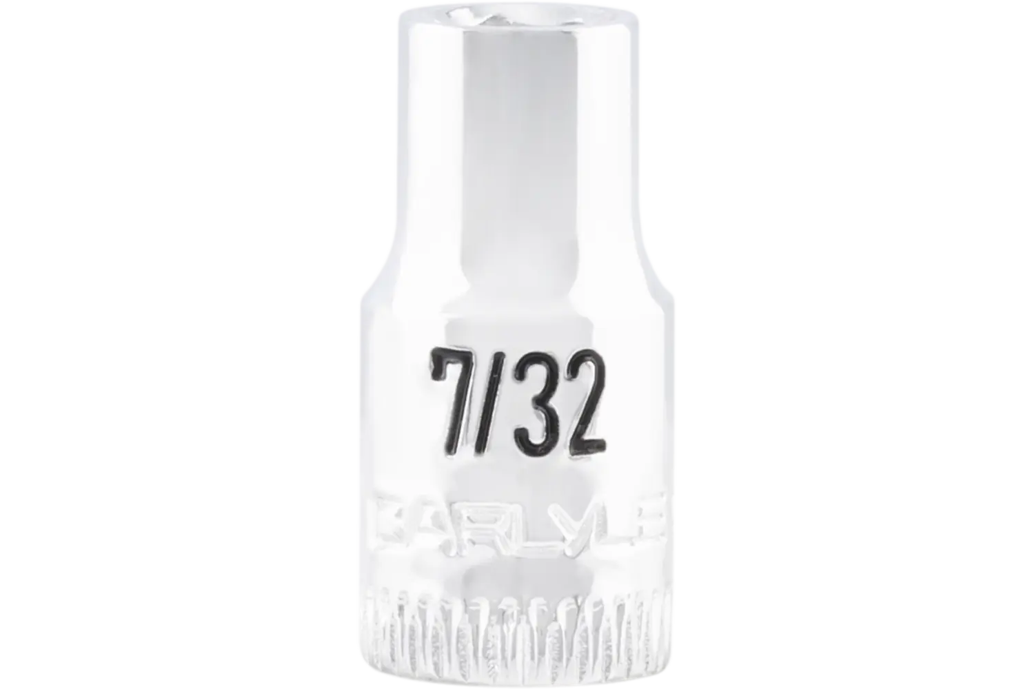 The Carlyle 1/4" Drive 6 Pt. SAE Socket is a precision tool for automotive tasks. Its 6-point design provides secure grip and reduces fastener wear. The polished chrome finish resists rust, and the knurled markings make it easy to identify. This socket is a dependable choice for mechanics and DIY enthusiasts.