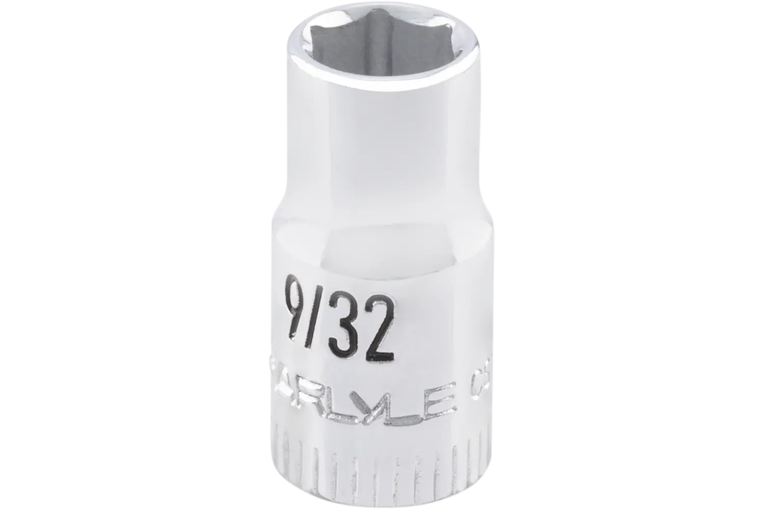 The Carlyle 1/4" Drive 6 Pt. SAE Socket is a precision tool for automotive tasks. Its 6-point design provides secure grip and reduces fastener wear. The polished chrome finish resists rust, and the knurled markings make it easy to identify. This socket is a dependable choice for mechanics and DIY enthusiasts.