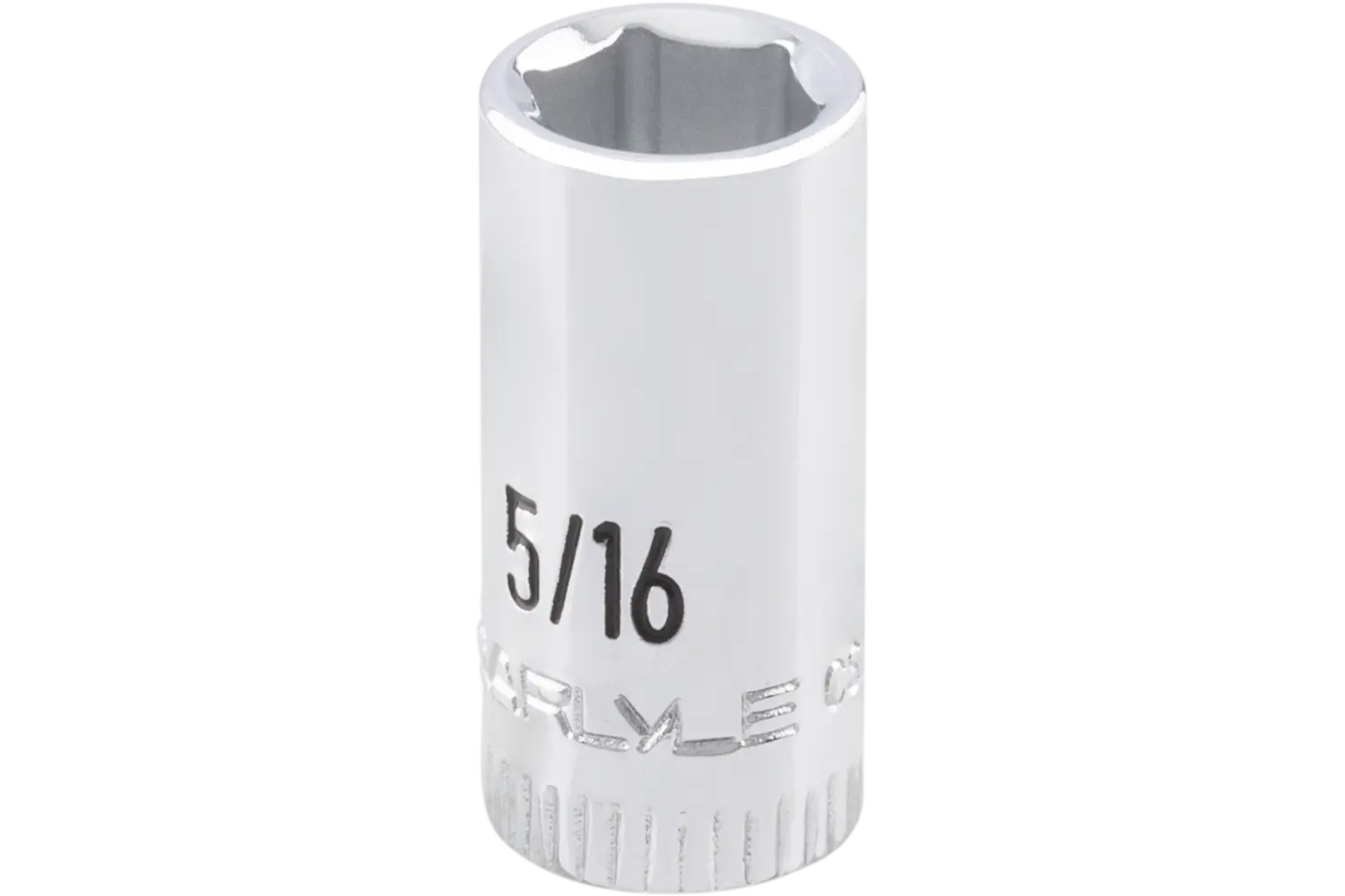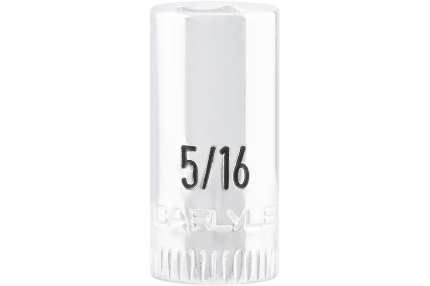 The Carlyle 1/4" Drive 6 Pt. SAE Socket is a precision tool for automotive tasks. Its 6-point design provides secure grip and reduces fastener wear. The polished chrome finish resists rust, and the knurled markings make it easy to identify. This socket is a dependable choice for mechanics and DIY enthusiasts.