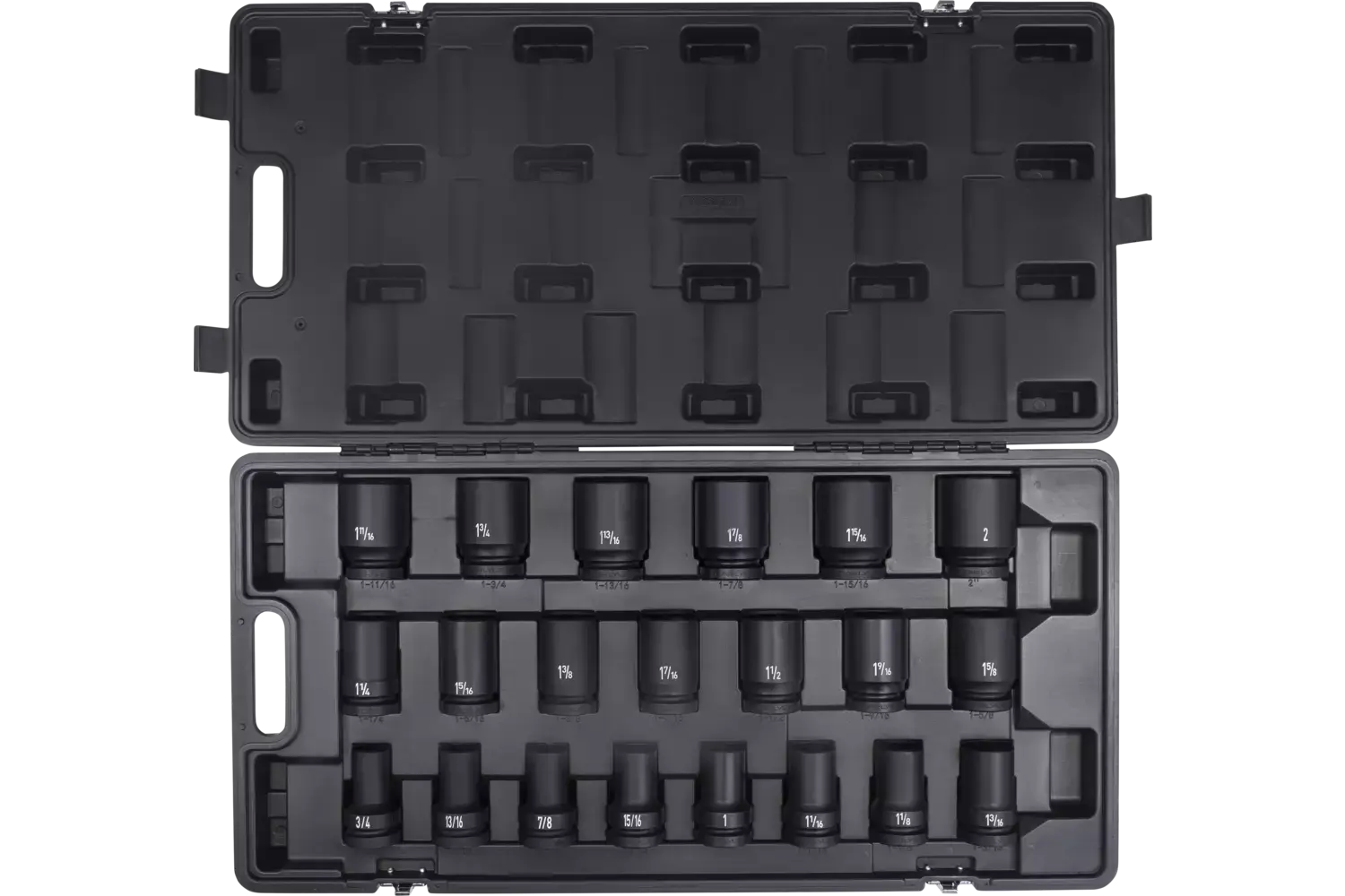 | 3/4in, 13/16in, 7/8in, 15/16in, 1in, 1-1/16in, 1-1/8in, 1-3/16in, 1-1/4in, 1-5/16in, 1-3/8in, 1-7/16in, 1-1/2in, 1-9/16in, 1-5/8in, 1-11/16in, 1-3/4in, 1-13/16in, 1-7/8in, 1-15/16in, 2in | Magnesium Phosphate | 6 Point | Deep | 21 PC | Blow Mold Case |