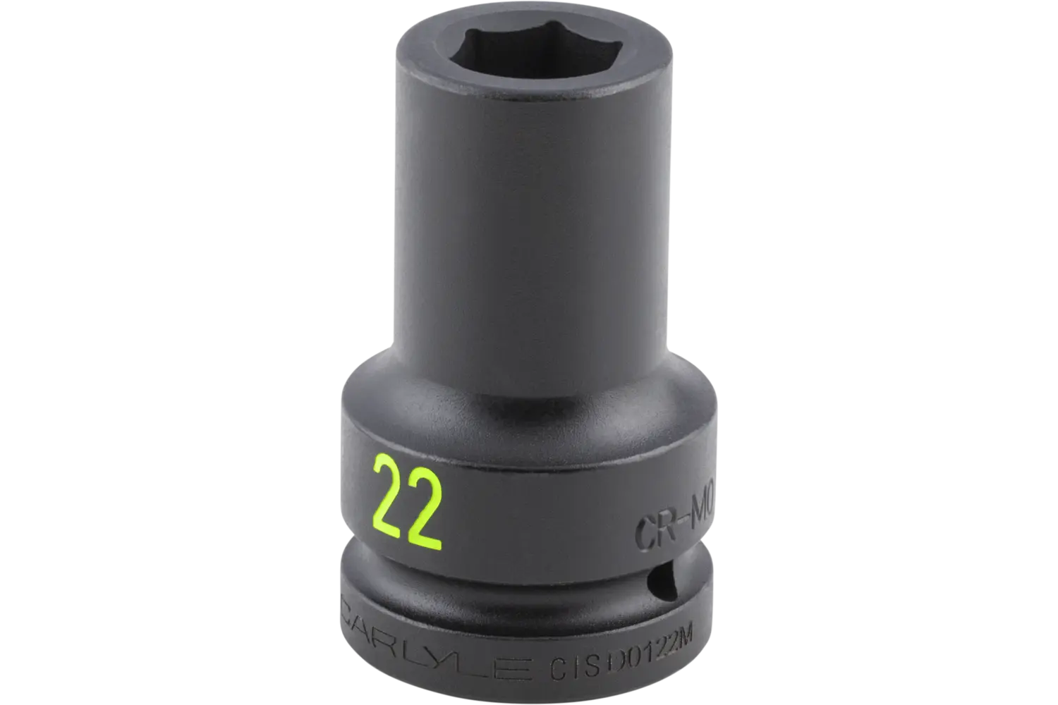The Carlyle 1 in. Drive Deep Impact Socket is a durable tool for challenging tasks. Made from chrome molybdenum alloy steel, it features a radius corner design that provides a strong grip on fasteners and reduces wear. Chamfered openings allow for quick and easy use, making it a practical option for a variety of applications. Available in a range of metric sizes, this socket is a reliable choice for professionals and DIY enthusiasts.