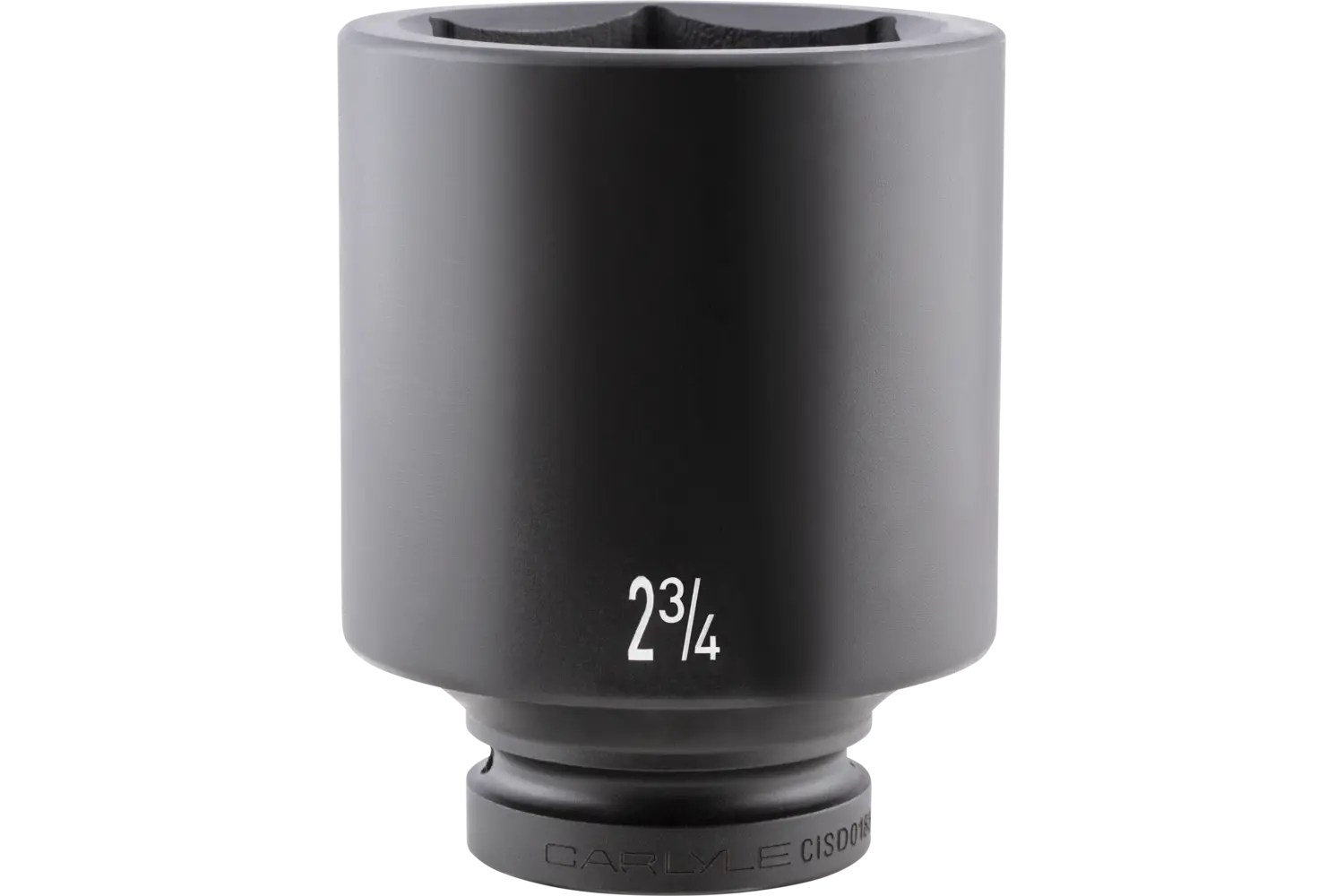 The Carlyle 1 in. Drive Deep Impact Sockets - SAE are designed for durability and versatility in heavy-duty applications. Made from chrome molybdenum alloy steel, these sockets feature a radius corner design that enhances grip and reduces wear on fasteners. Chamfered openings allow for quick and smooth operation, while deep-rolled stamped markings make size identification easy. These sockets are a valuable addition to any professional or DIY toolkit.