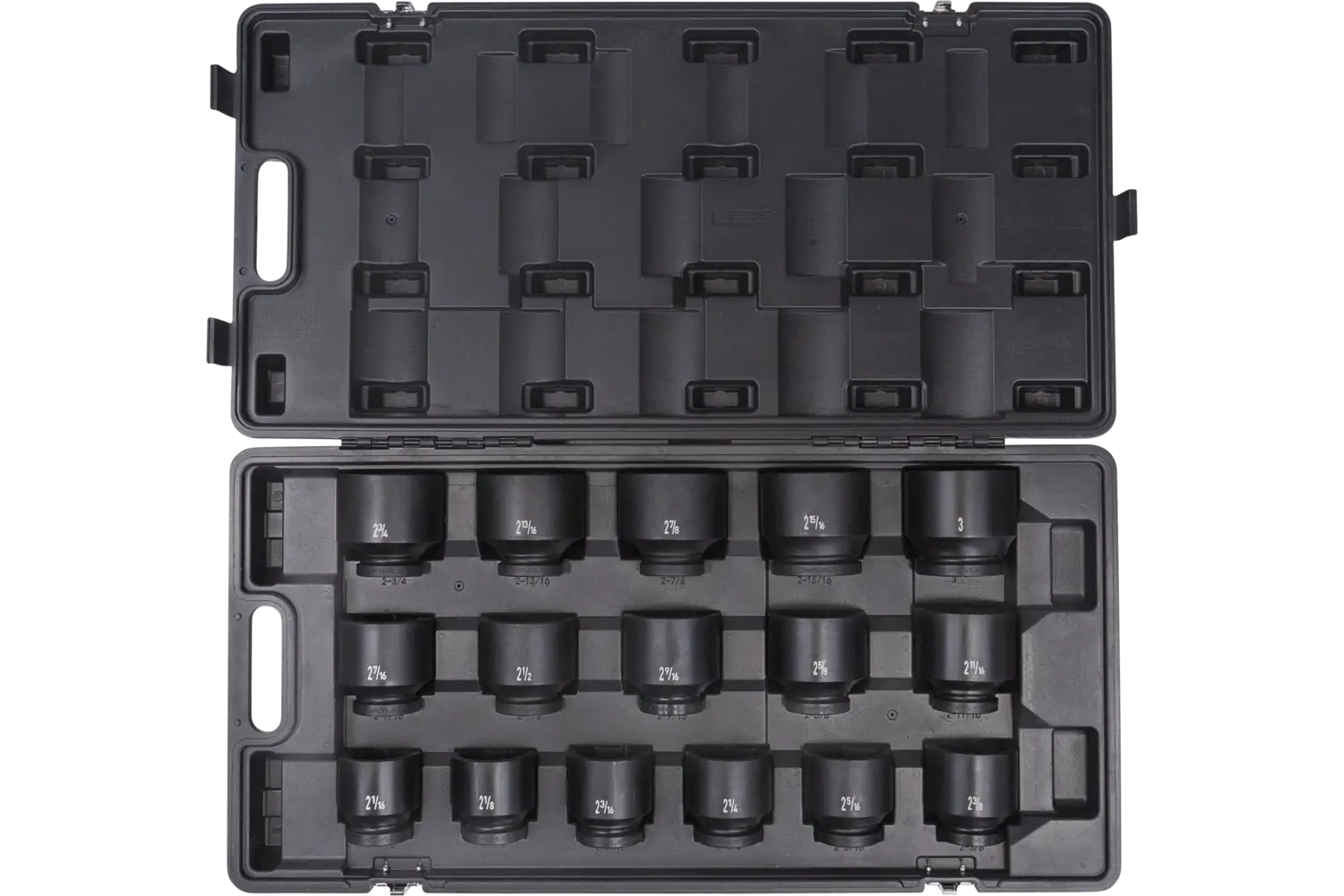 | 1in, 1-1/8in, 1-1/4in, 1-3/8in, 1-1/2in, 1-5/8in, 1-3/4in, 1-7/8in, 2in | Magnesium Phosphate | 6 Point | Standard | 9 PC | Blow Mold Case |
