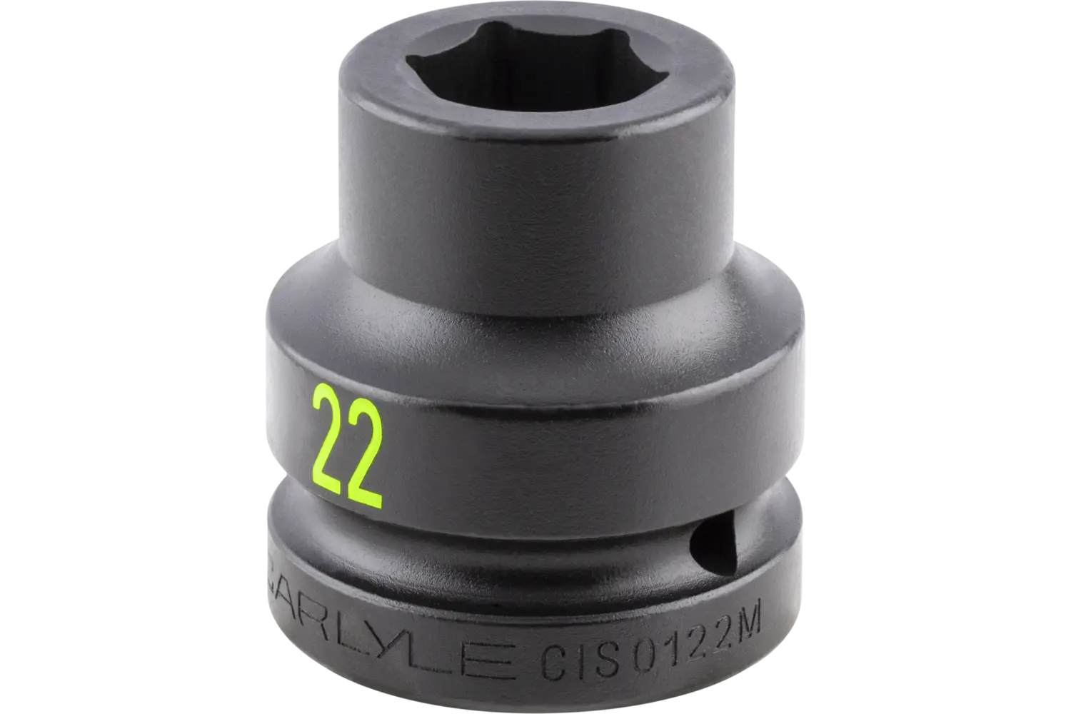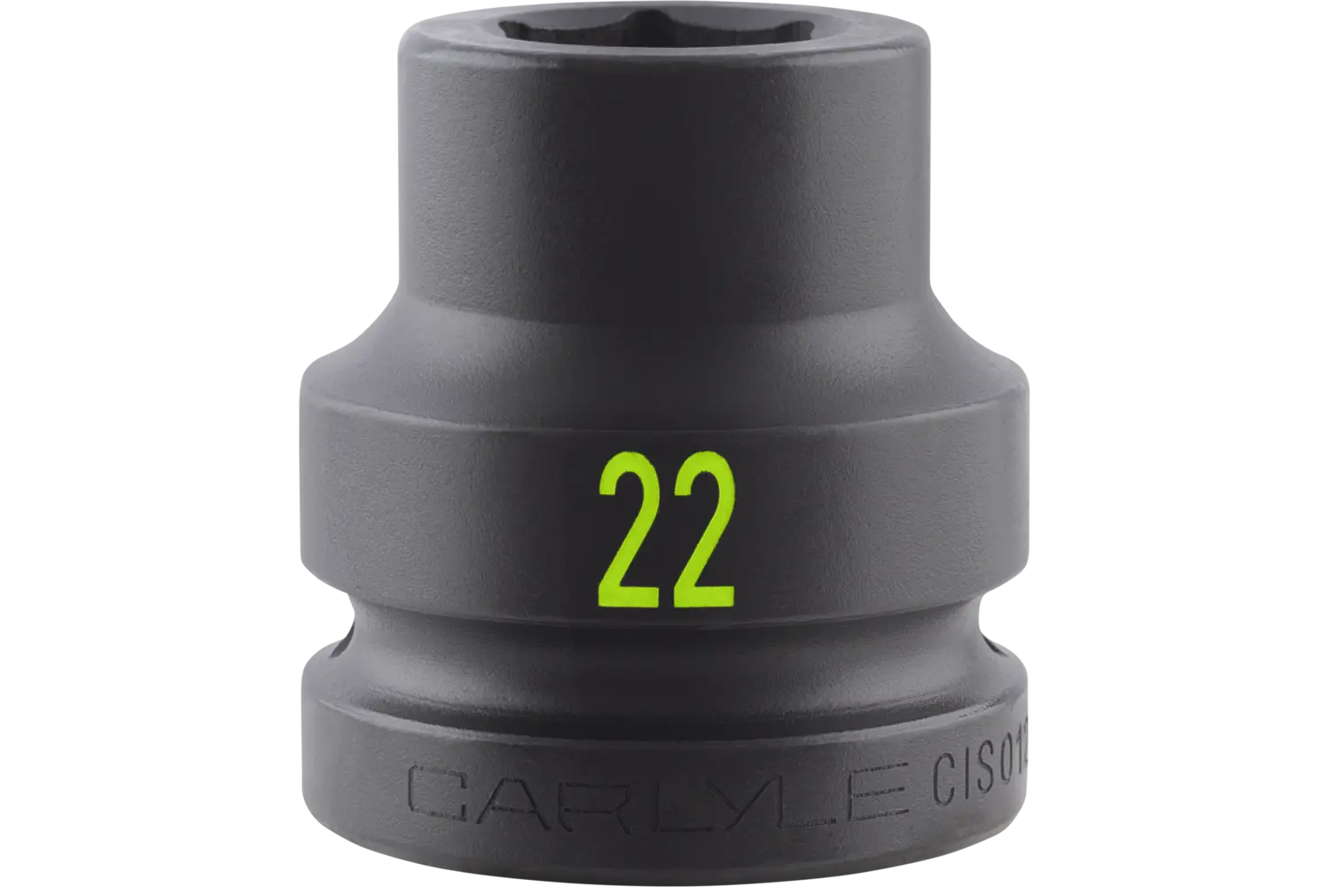 The Carlyle 1 in. Drive Standard Depth Impact Sockets - Metric are designed for tough jobs requiring precision and durability. Made from chrome molybdenum alloy steel, these sockets feature a radius corner design that enhances grip on fasteners. Chamfered openings allow for smooth and efficient use, while deep-rolled stamped markings make it easy to identify the right size. Available in a range of metric sizes, these sockets are a valuable addition to any professional or DIY toolkit.