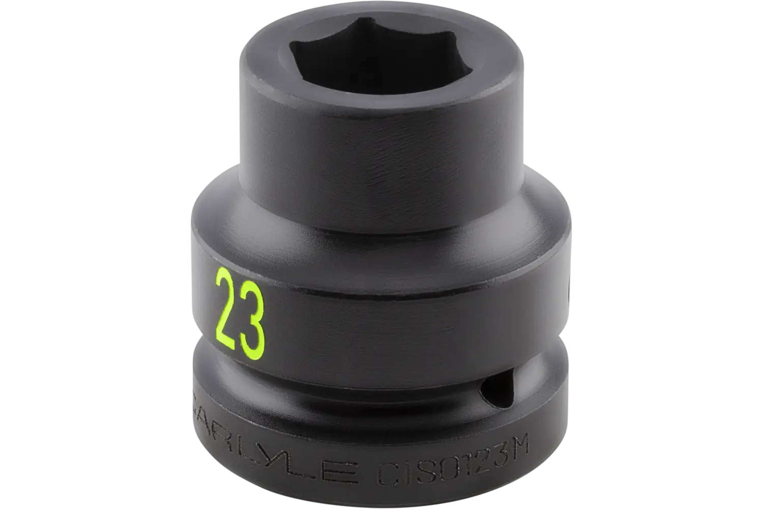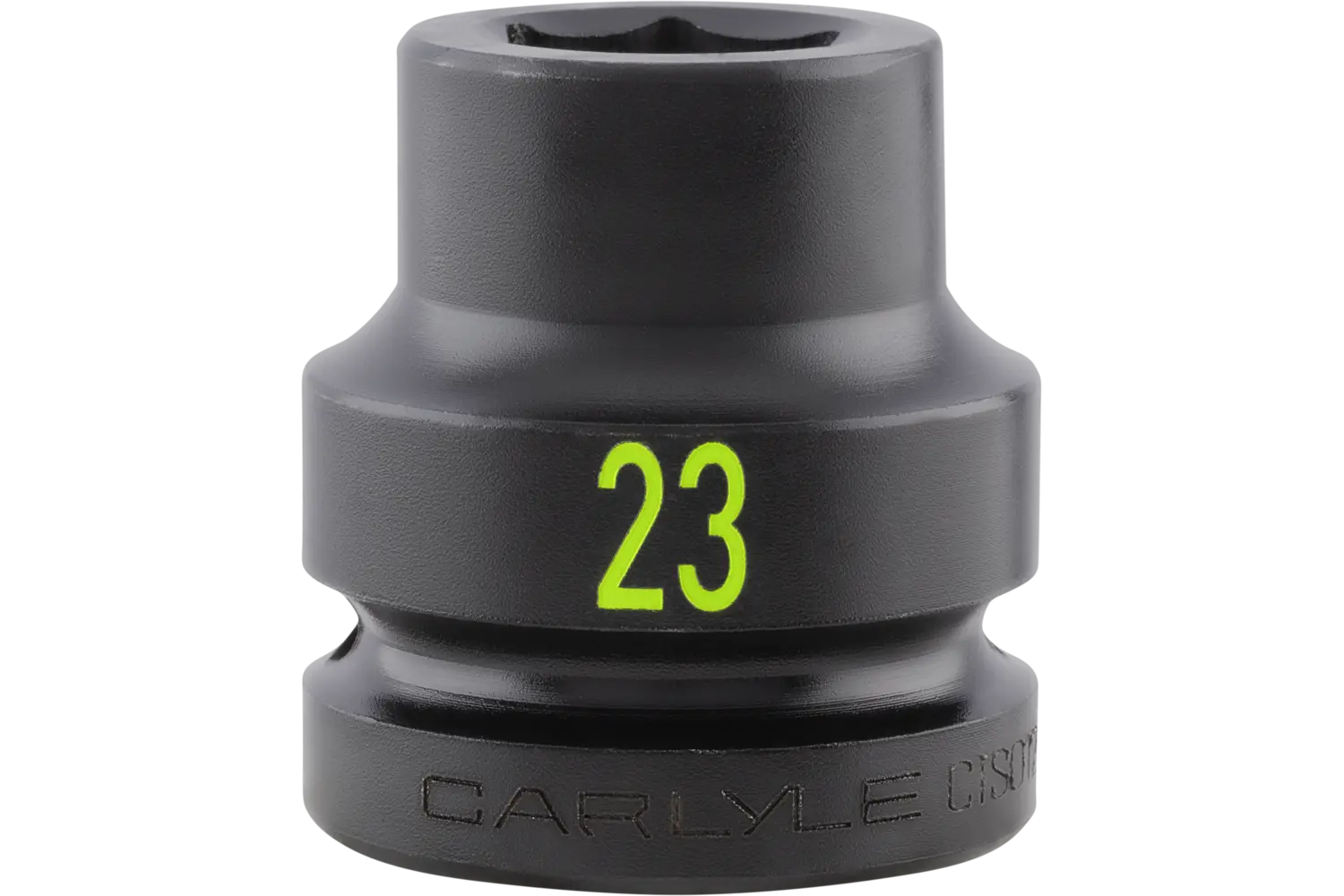 The Carlyle 1 in. Drive Standard Depth Impact Sockets - Metric are designed for tough jobs requiring precision and durability. Made from chrome molybdenum alloy steel, these sockets feature a radius corner design that enhances grip on fasteners. Chamfered openings allow for smooth and efficient use, while deep-rolled stamped markings make it easy to identify the right size. Available in a range of metric sizes, these sockets are a valuable addition to any professional or DIY toolkit.