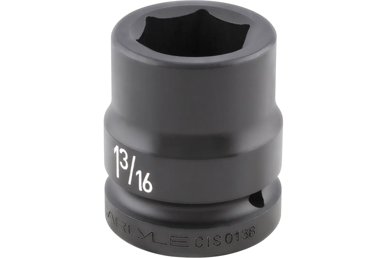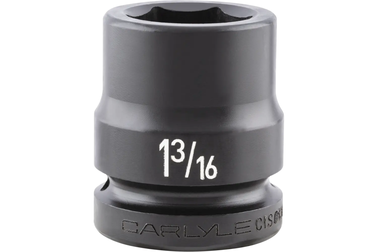 The Carlyle 1 in. Drive Standard Depth Impact Sockets - SAE are reliable tools for automotive and industrial applications. Made from chrome molybdenum alloy steel, these sockets are designed for strength and durability. The radius corner design improves grip on fasteners, while chamfered openings allow for quick and efficient use. With deep-rolled stamped markings for easy identification, these sockets are a practical and long-lasting addition to any toolkit.